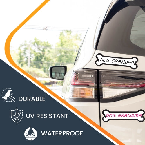 Dog Grandpa and Dog Grandma, 2 Pack Dog Bone Car Magnets - 2 x 7" Dog Bone Decals Heavy Duty for Car Truck SUV Waterproof …