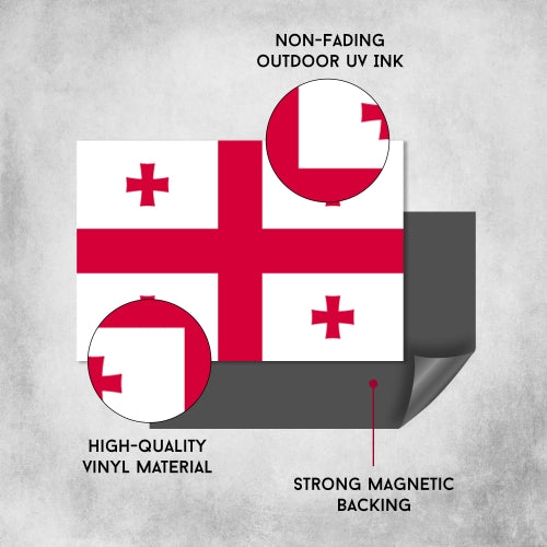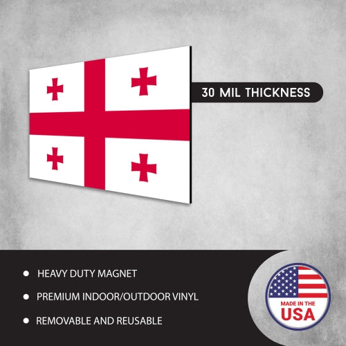 Georgia Flag Magnet. Bright Beautiful that won't fade to show your Georgian pride. Printed on Heavy Duty 35 Mil Magnetized Vinyl.