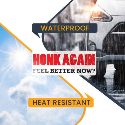 Tired of annoying drivers honking? This Honk Again heavy duty car and truck magnet will surely get their attention! Perfect for your car, truck, SUV, RV, Mailbox, or even your fridge!