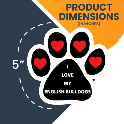 I Love My English Bulldogs Pawprint Car Magnet By Magnet Me Up 5" Paw Print Auto Truck Decal Magnet …