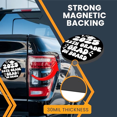 - 🧲Celebrate Your 12th Grade Grad in Style – Make their big day extra special with this vibrant 12th Grade Graduation Car Magnet. Featuring bold white and black colors with “Grad On Board” messaging, it's a fun and festive way to show off your Class of 2025 pride on the road or at school events.
