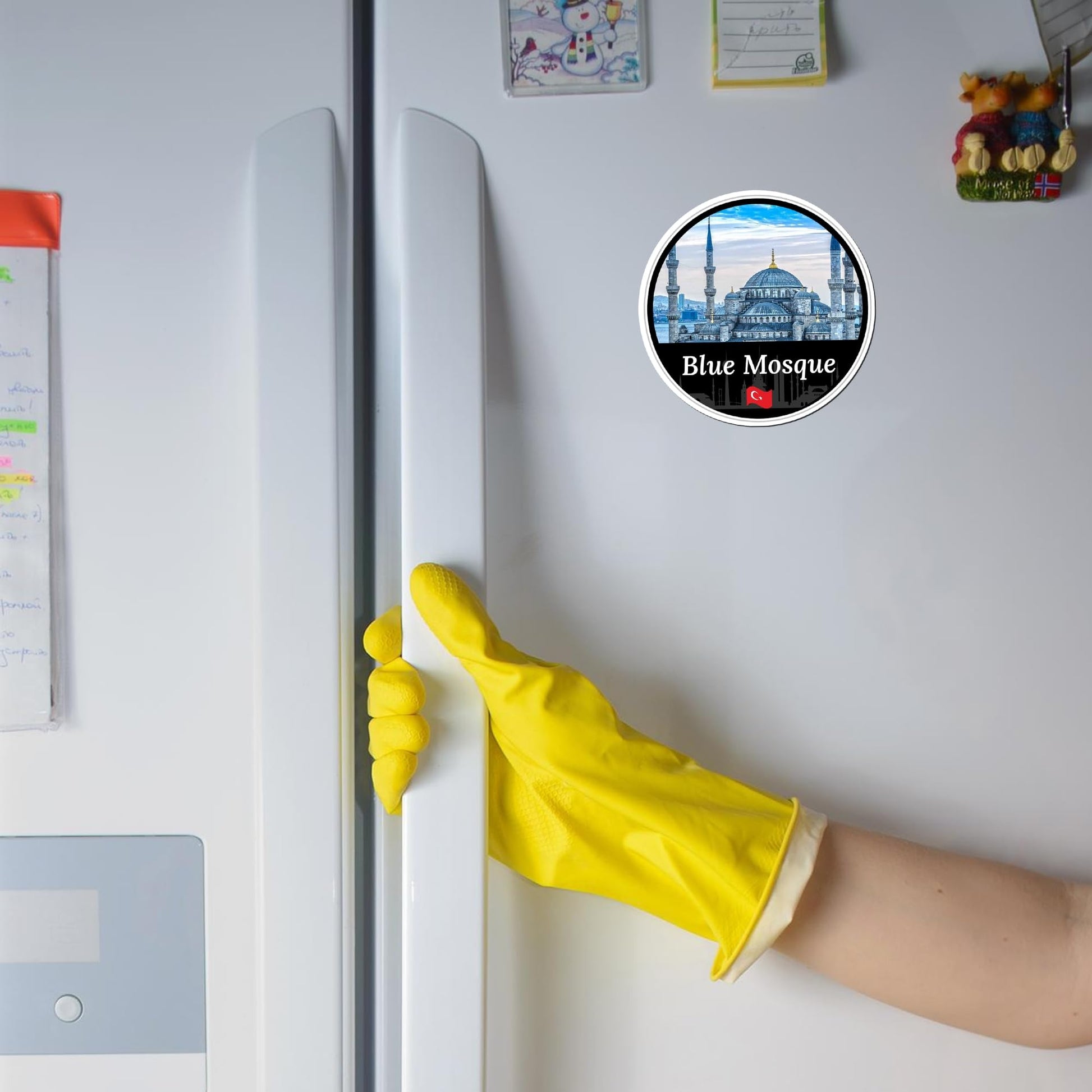 Magnet Me Up Blue Mosque Magnet Decal, 5" Round Full-Color Automotive Magnet Featuring Istanbul Architecture, Islamic Landmark Travel Gift, Turkish Souvenir, Durable Vinyl, Made in The USA