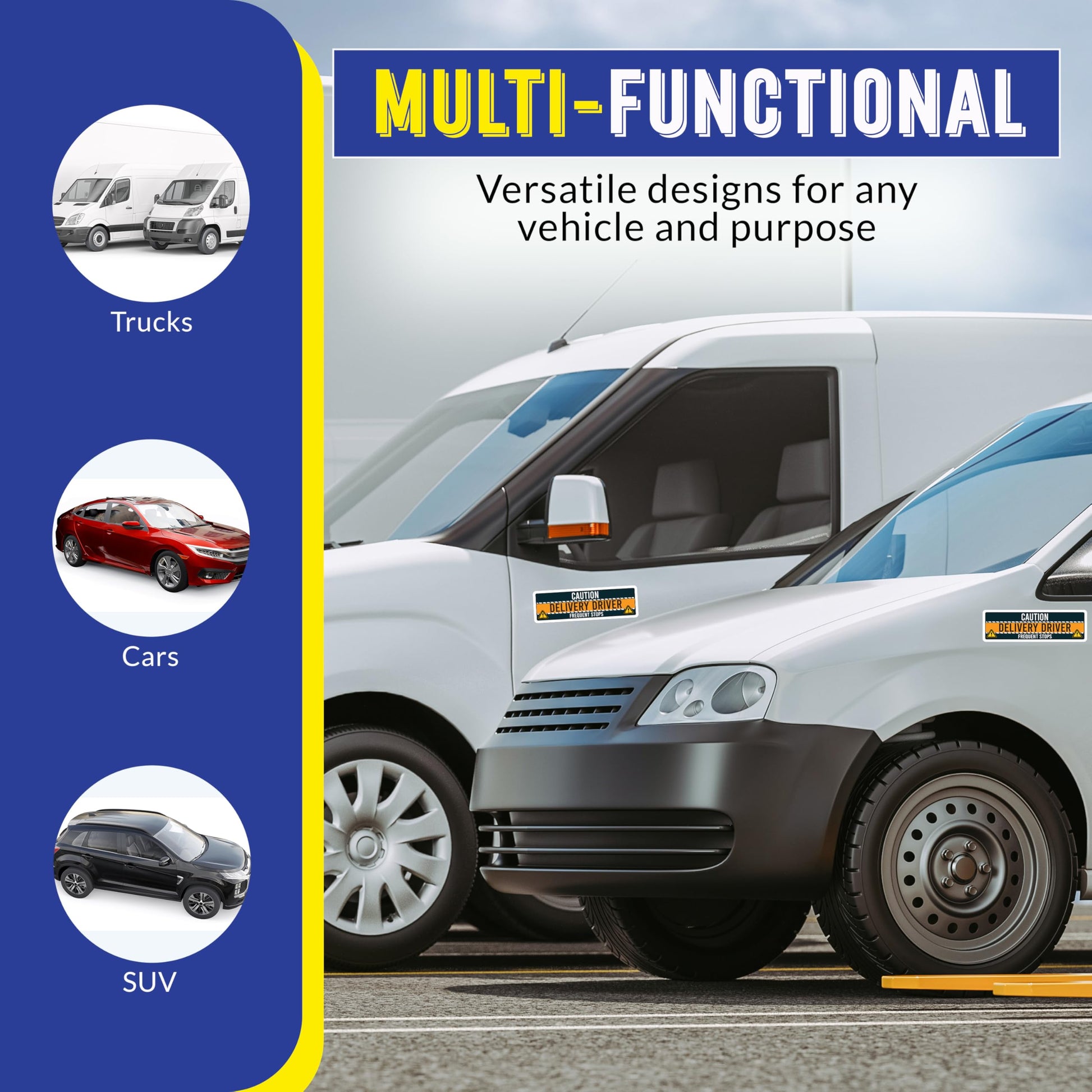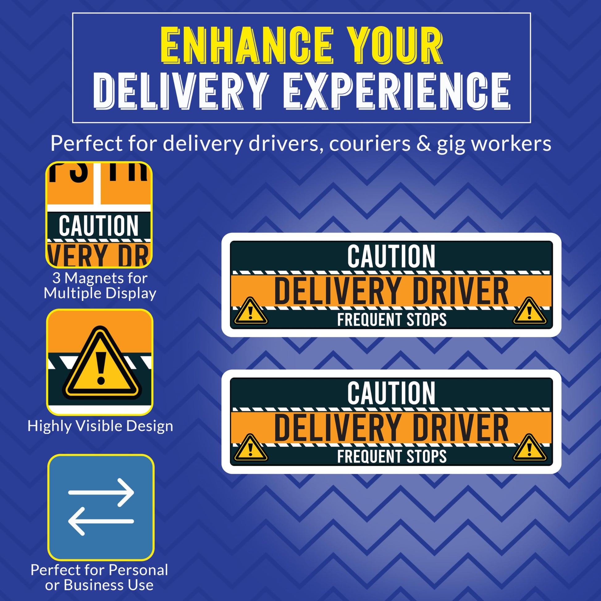 Magnet Me Up Caution Delivery Driver Frequent Stops Magnetic Decal, 10x3 Inch, 2 Pack, Delivery Essentials, for Cars, Trucks, Flex Drivers Magnet, Weatherproof, Full-Color Print, Made in USA