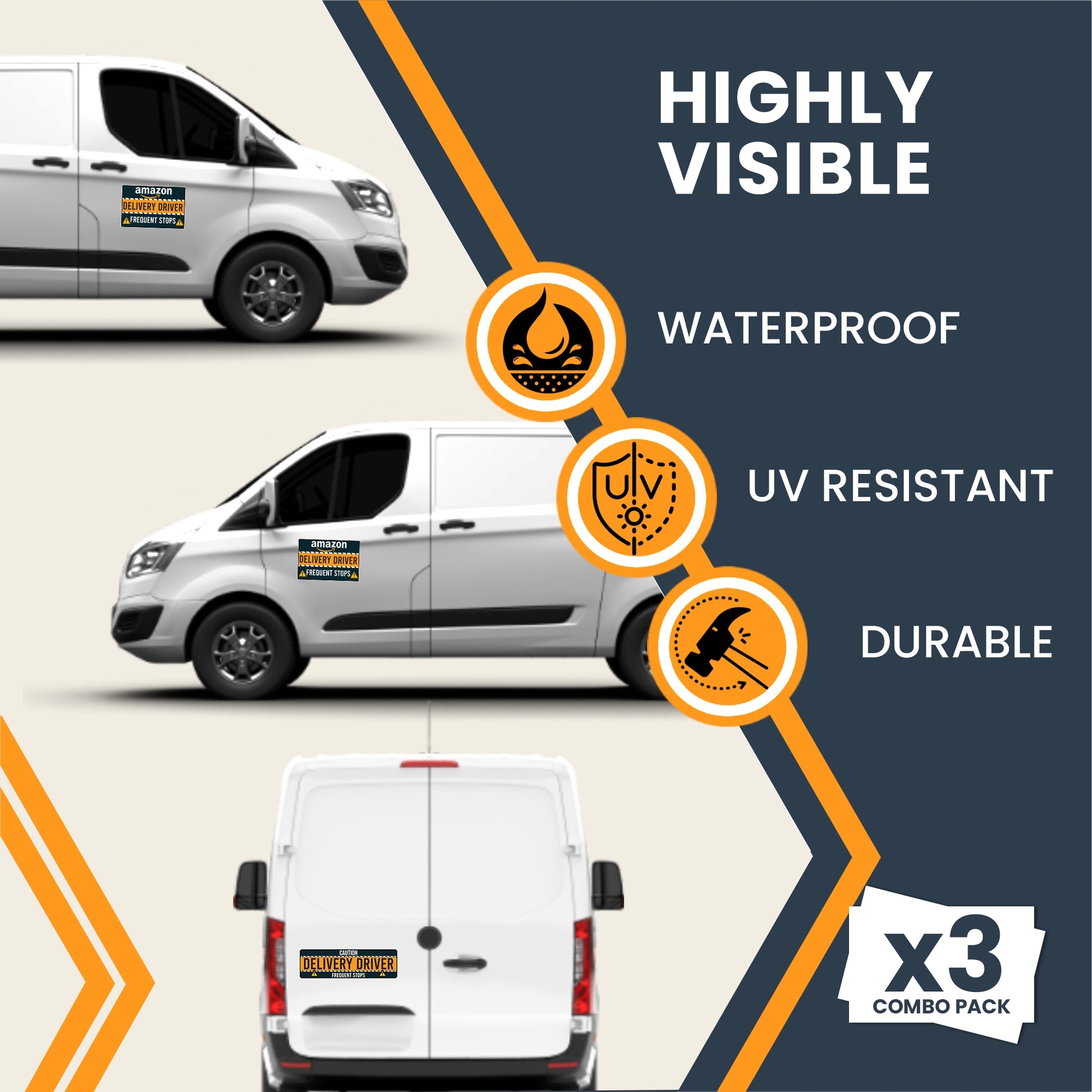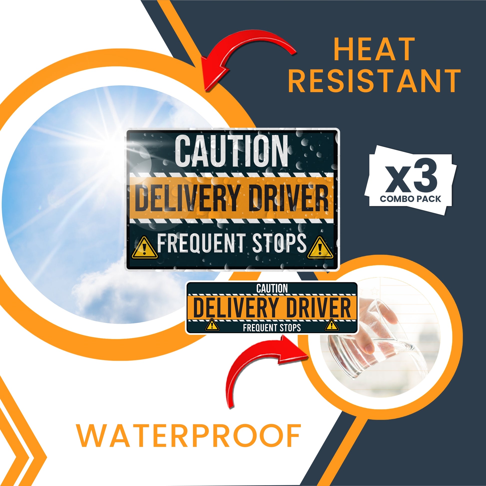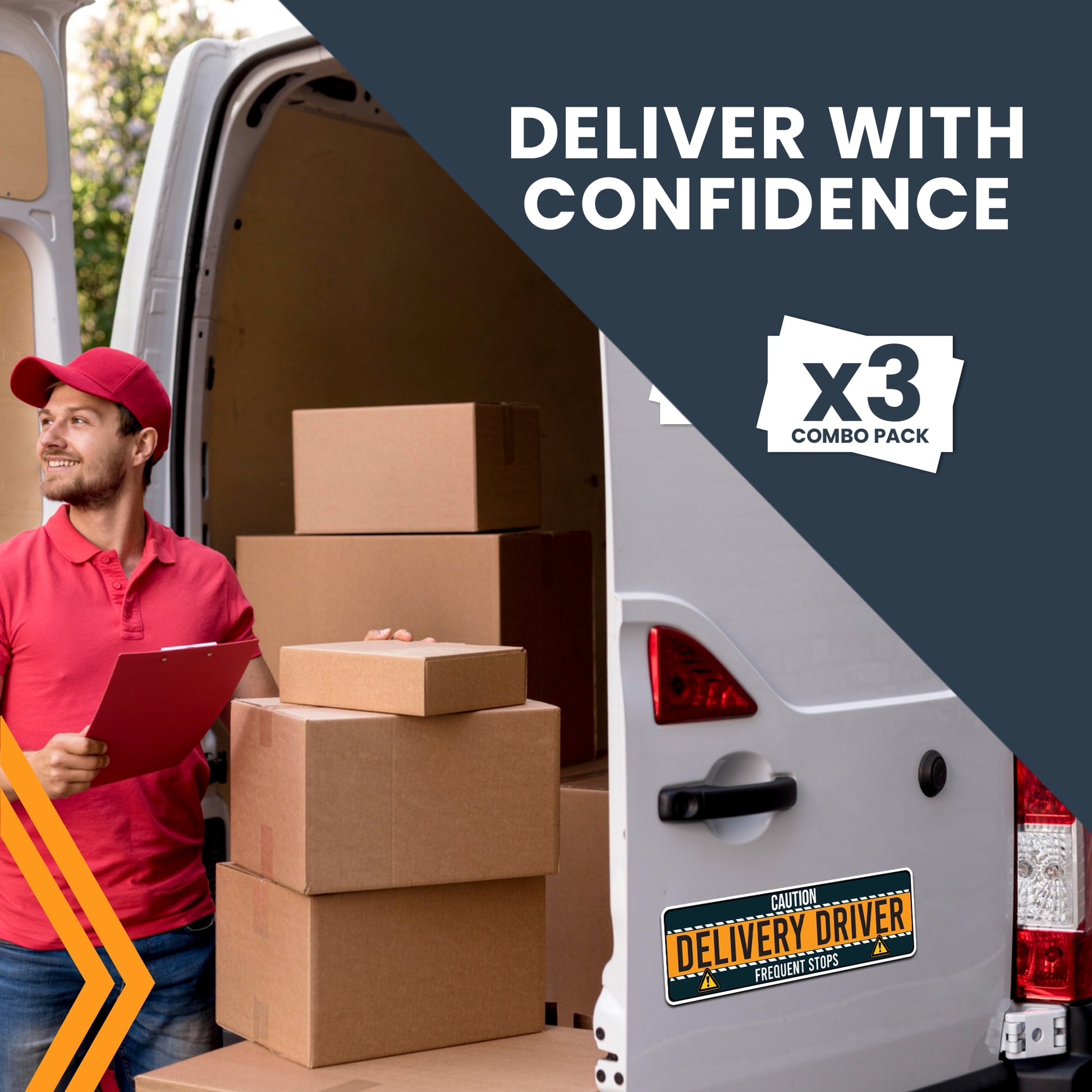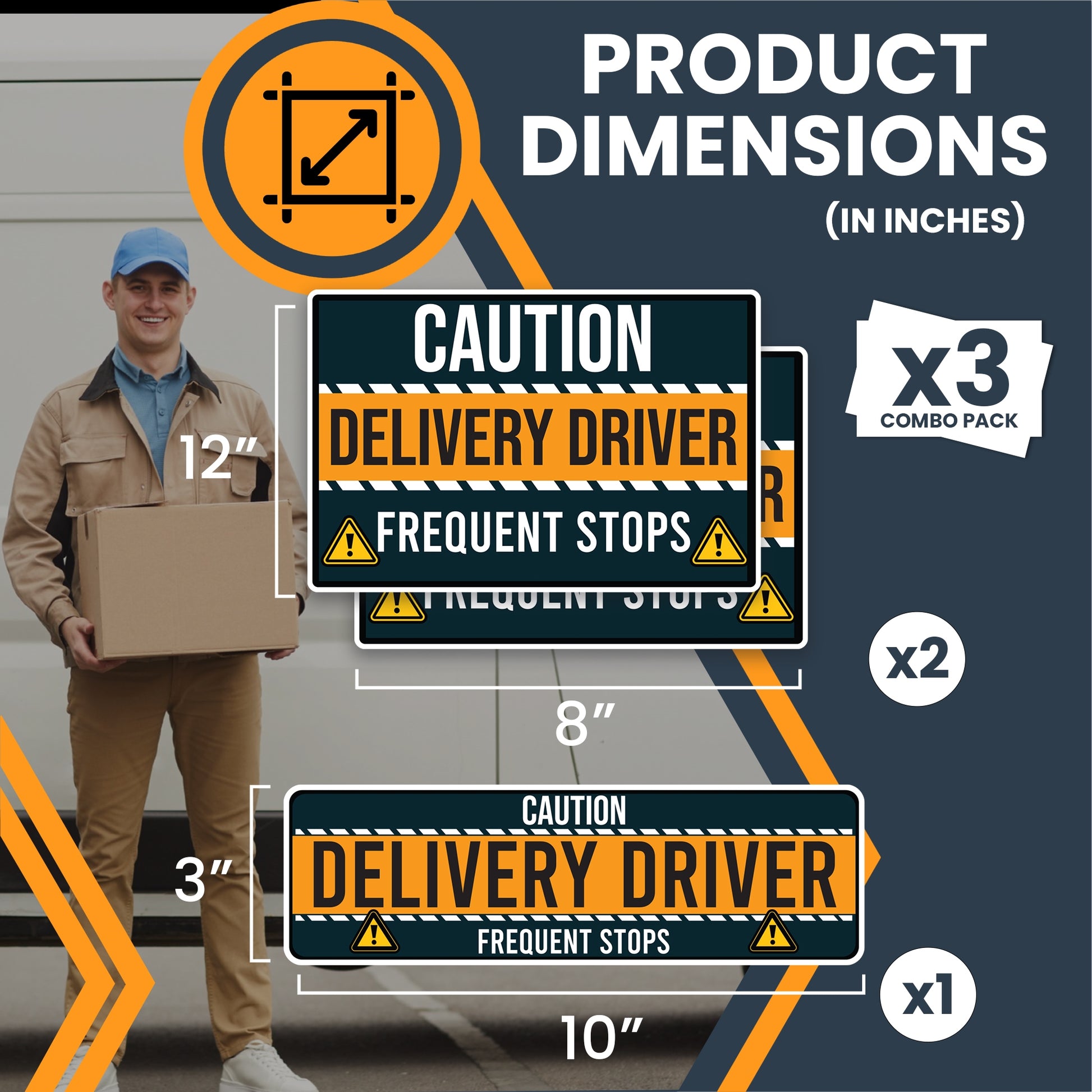 Magnet Me Up Caution Frequent Stops Delivery Driver Automotive Magnet Decal, 3 Pack, Two 8x12 inch and One 3x10 inch, Automotive Magnet for Car, Delivery Driver, Crafted in USA