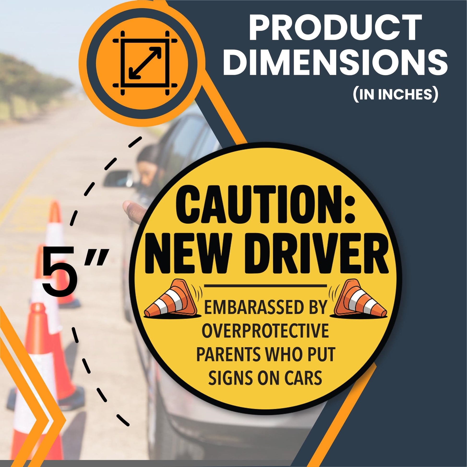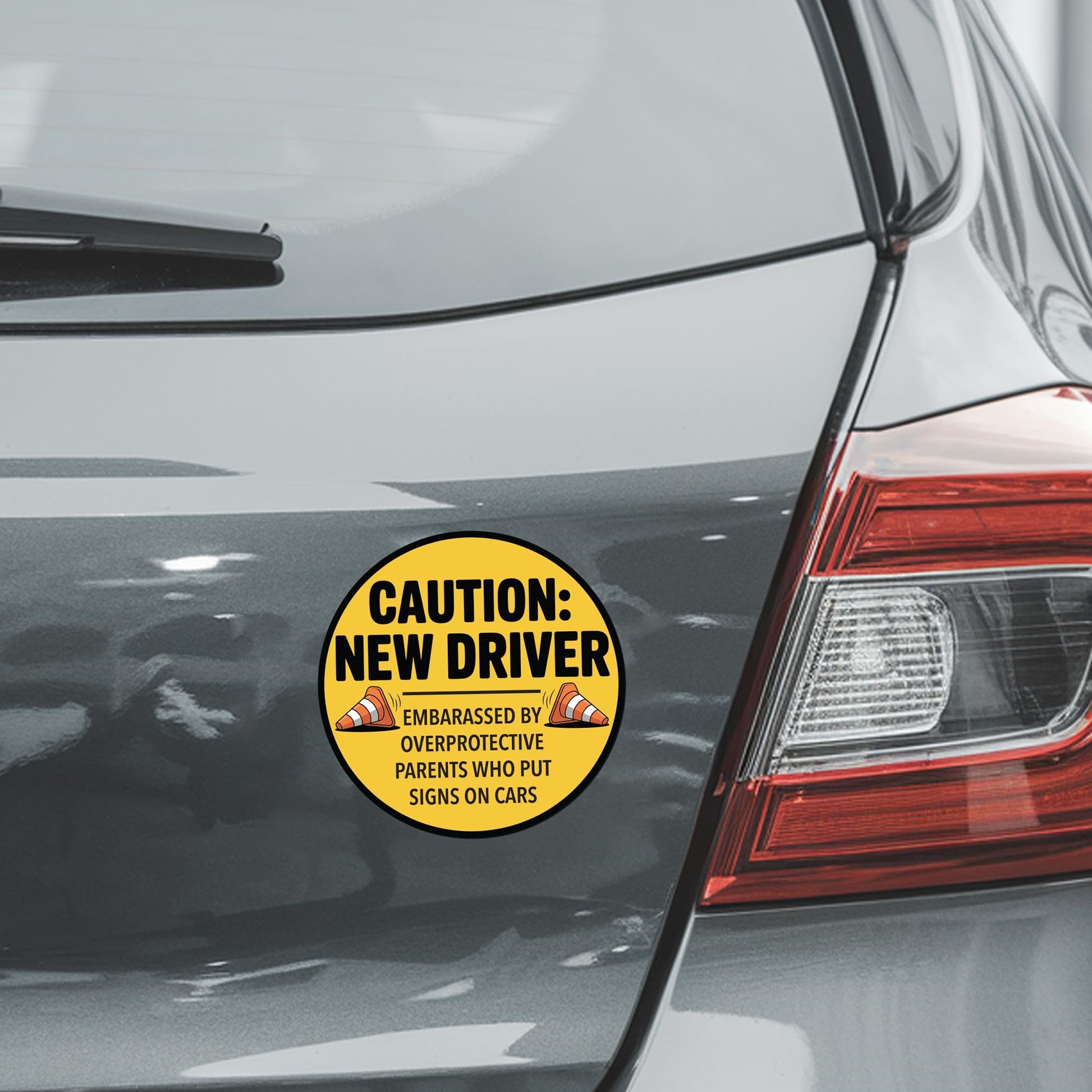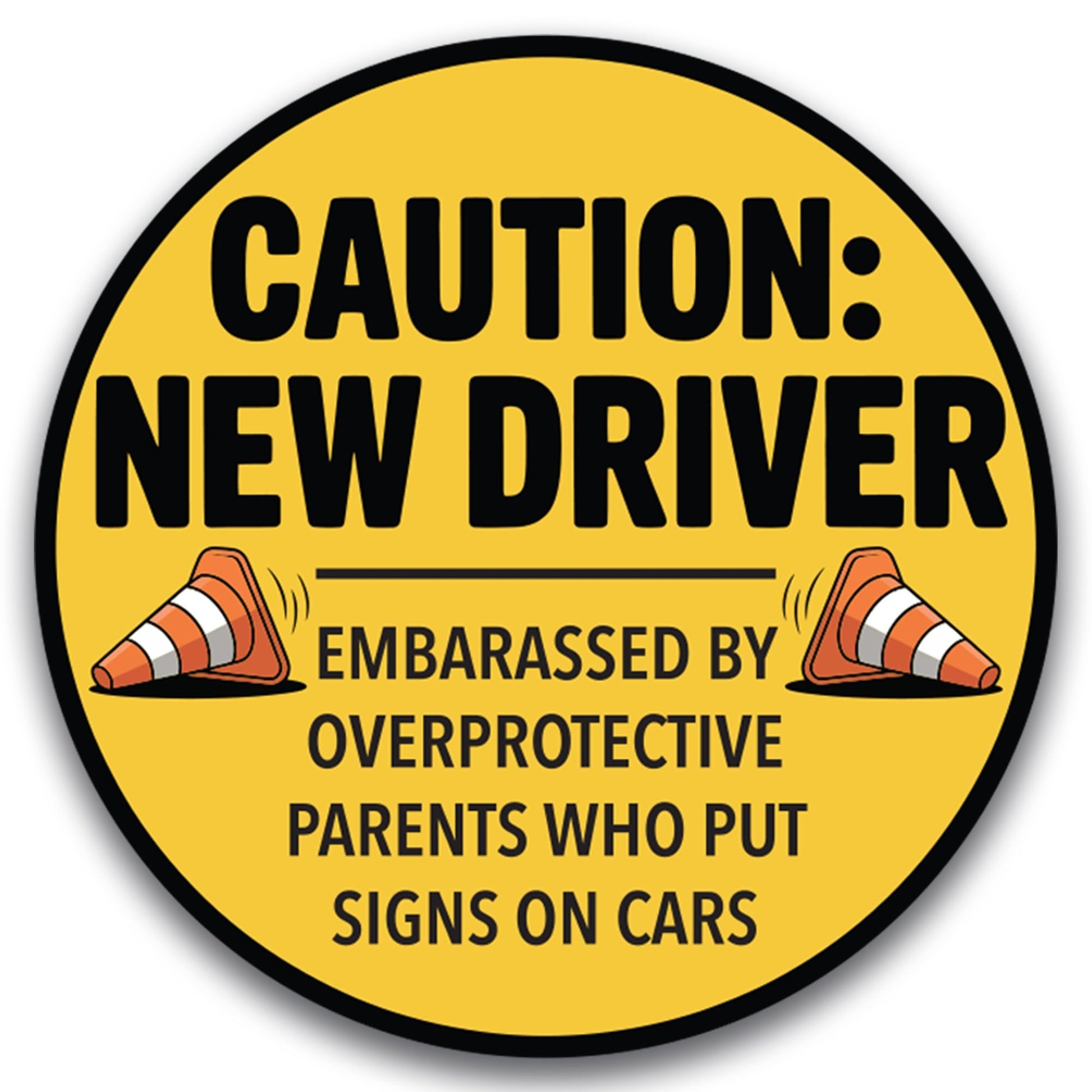Magnet Me Up Caution New Driver - Embarrassed by Over Protective Parents Who Put Signs in Car Magnet - 5 Inch Round Funny Magnetic Decal, Teen Drivers - Durable UV-Printed, Made in The USA