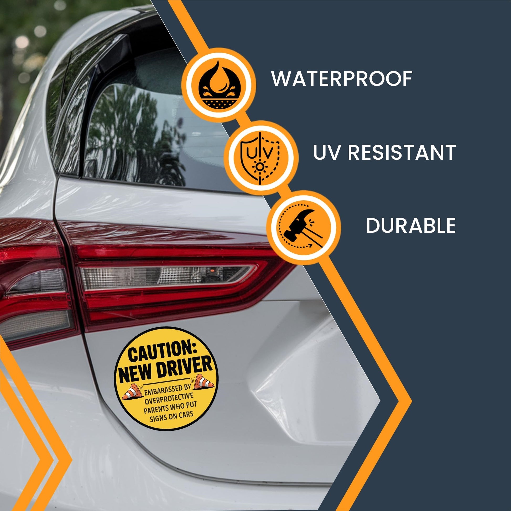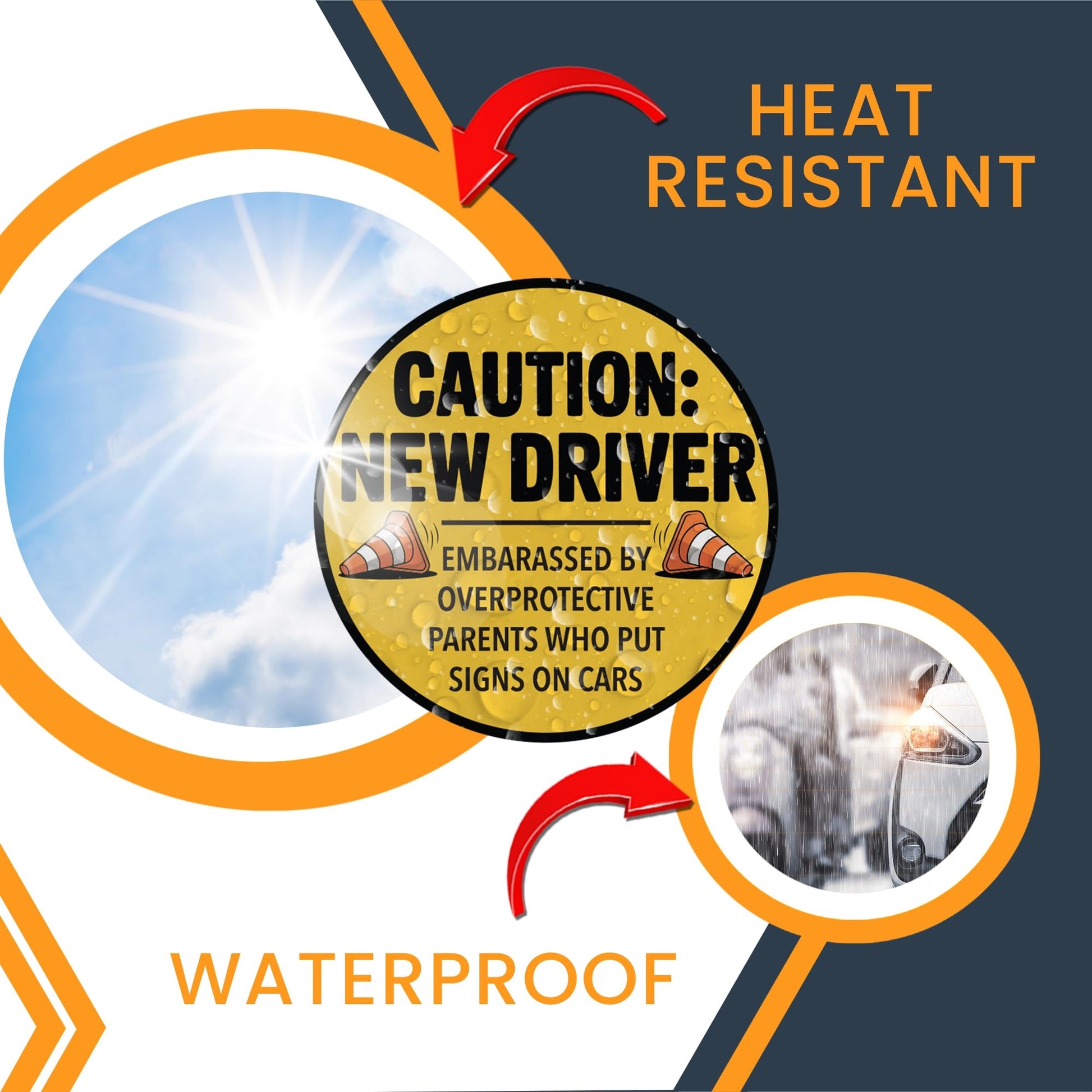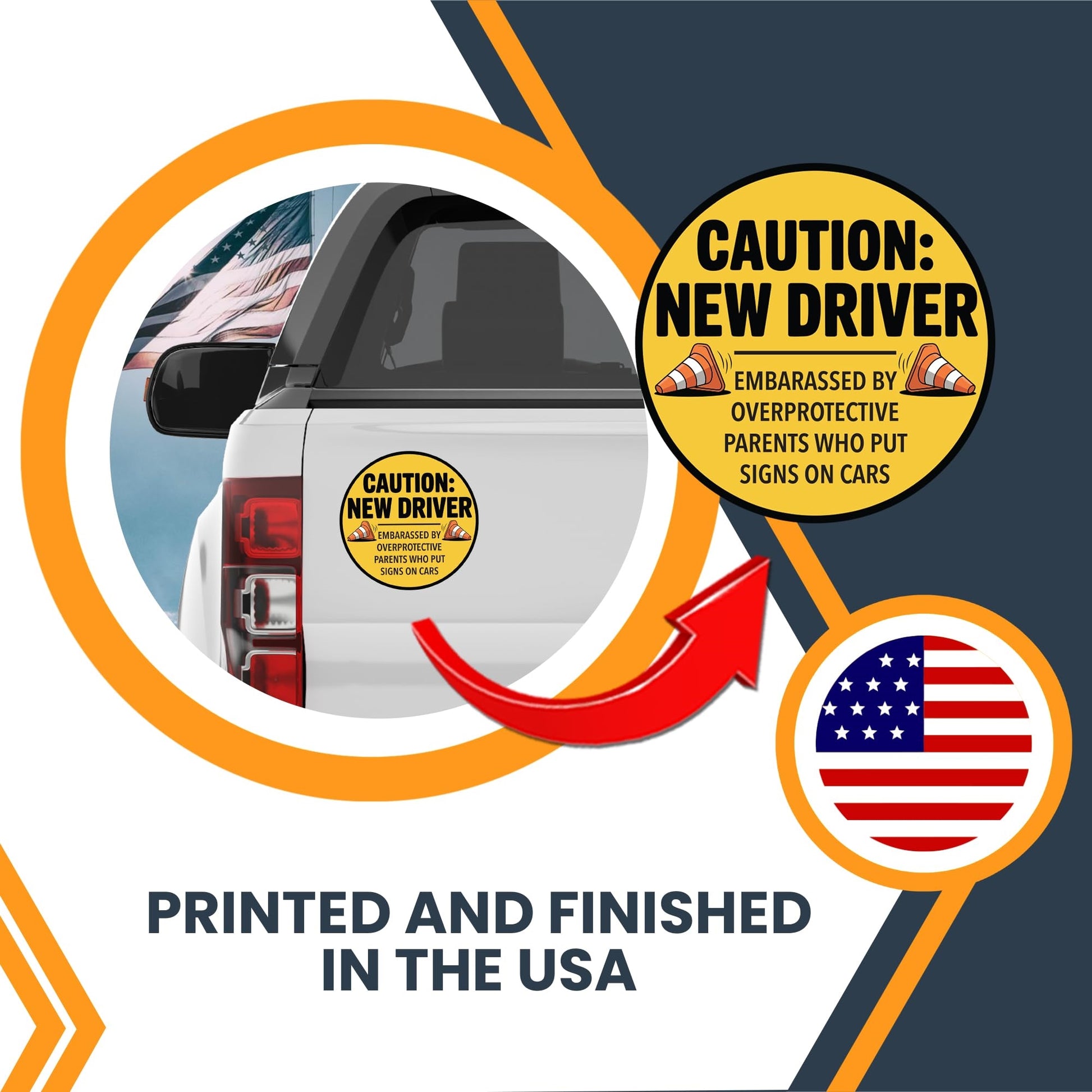 Magnet Me Up Caution New Driver - Embarrassed by Over Protective Parents Who Put Signs in Car Magnet - 5 Inch Round Funny Magnetic Decal, Teen Drivers - Durable UV-Printed, Made in The USA