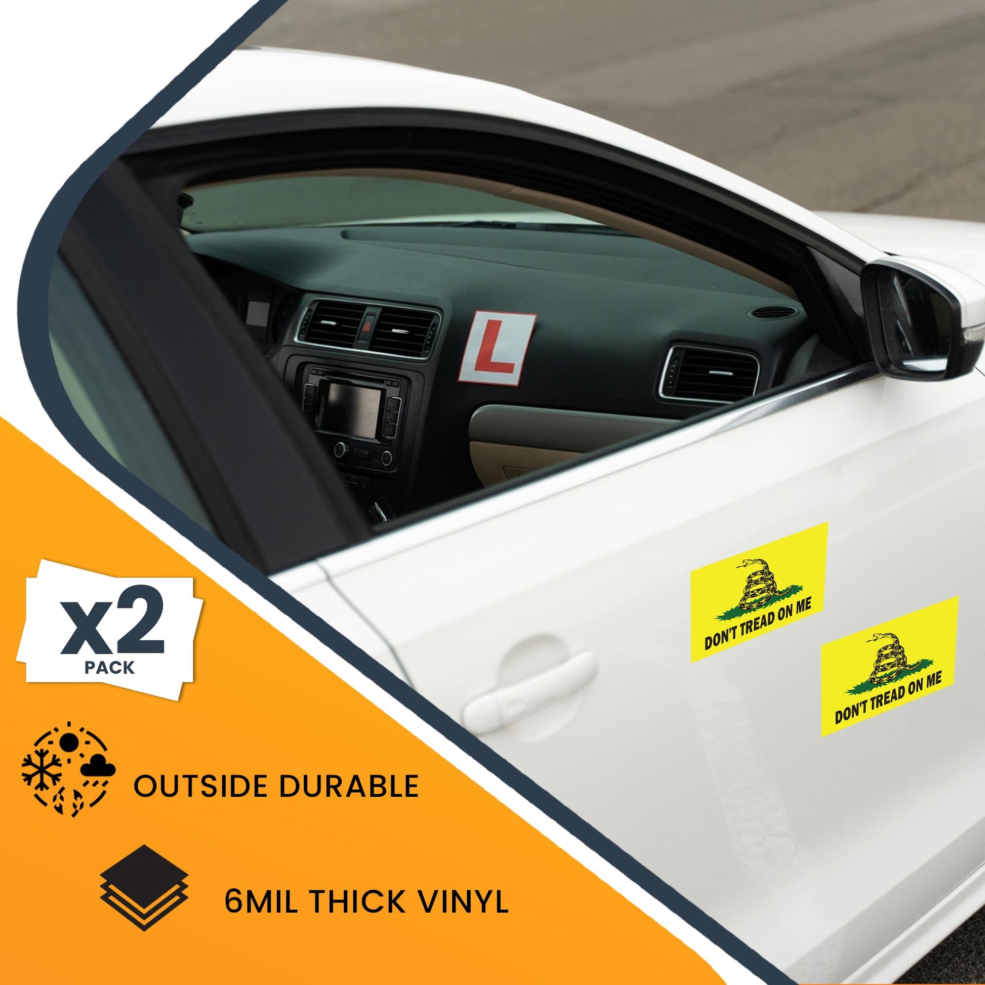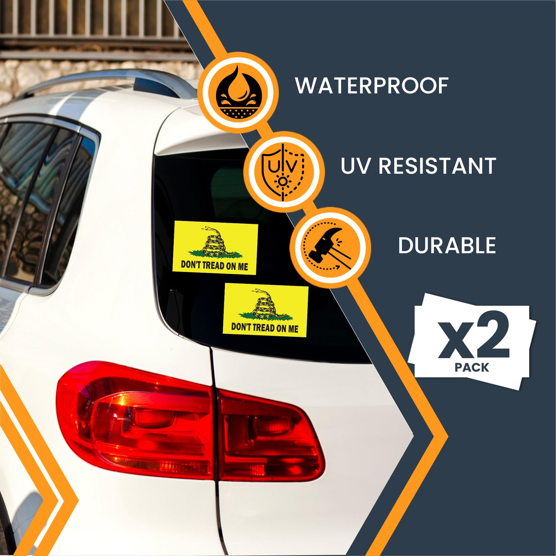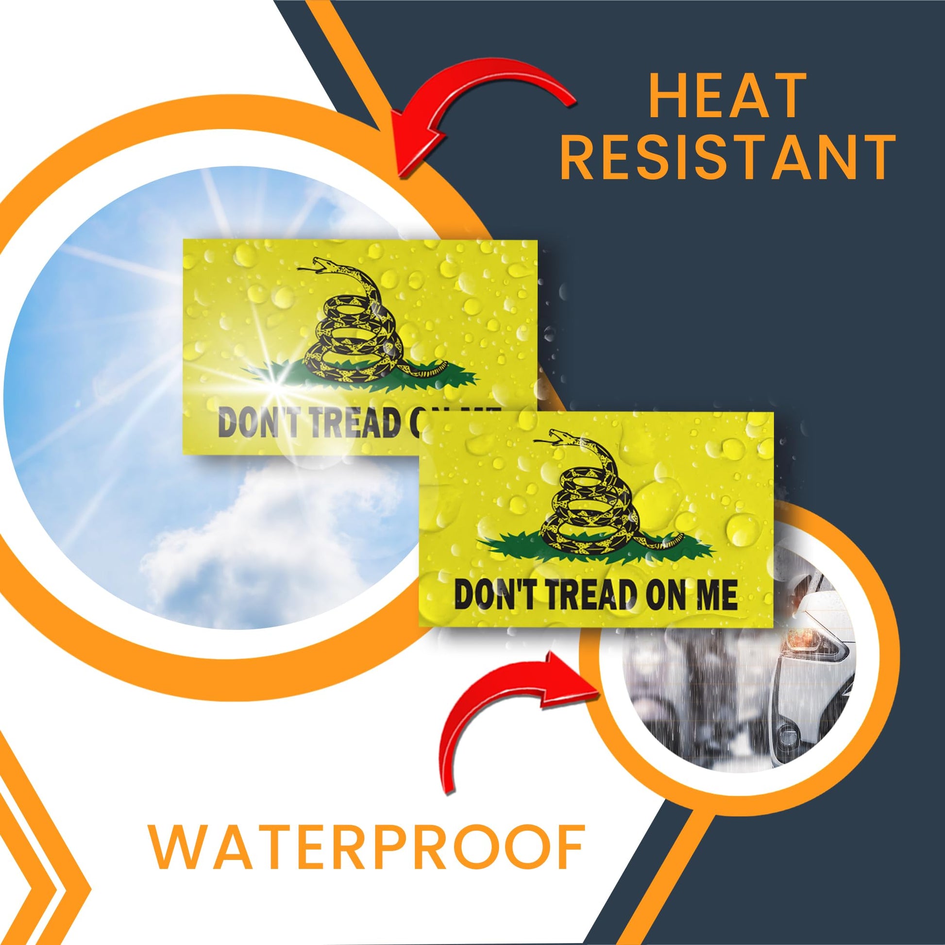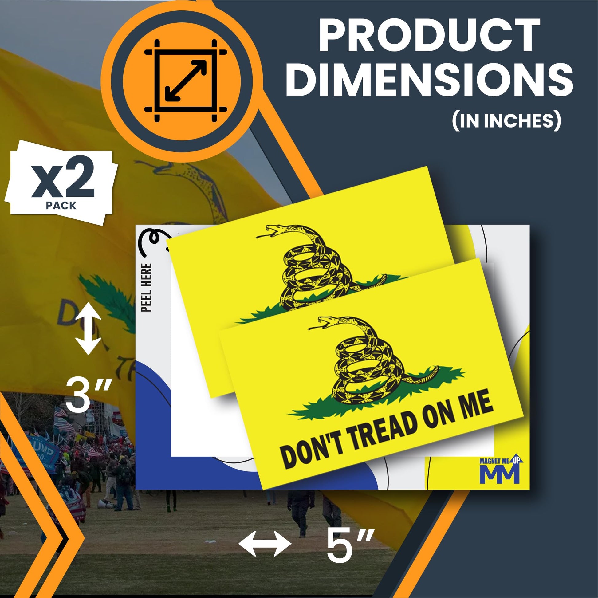 Magnet Me Up Don't Tread on Me Gadsden Flag Sticker Decal, 3x5 Inches, 2 Packs ? Waterproof, for Vehicles, Laptops, & More - Made in USA
