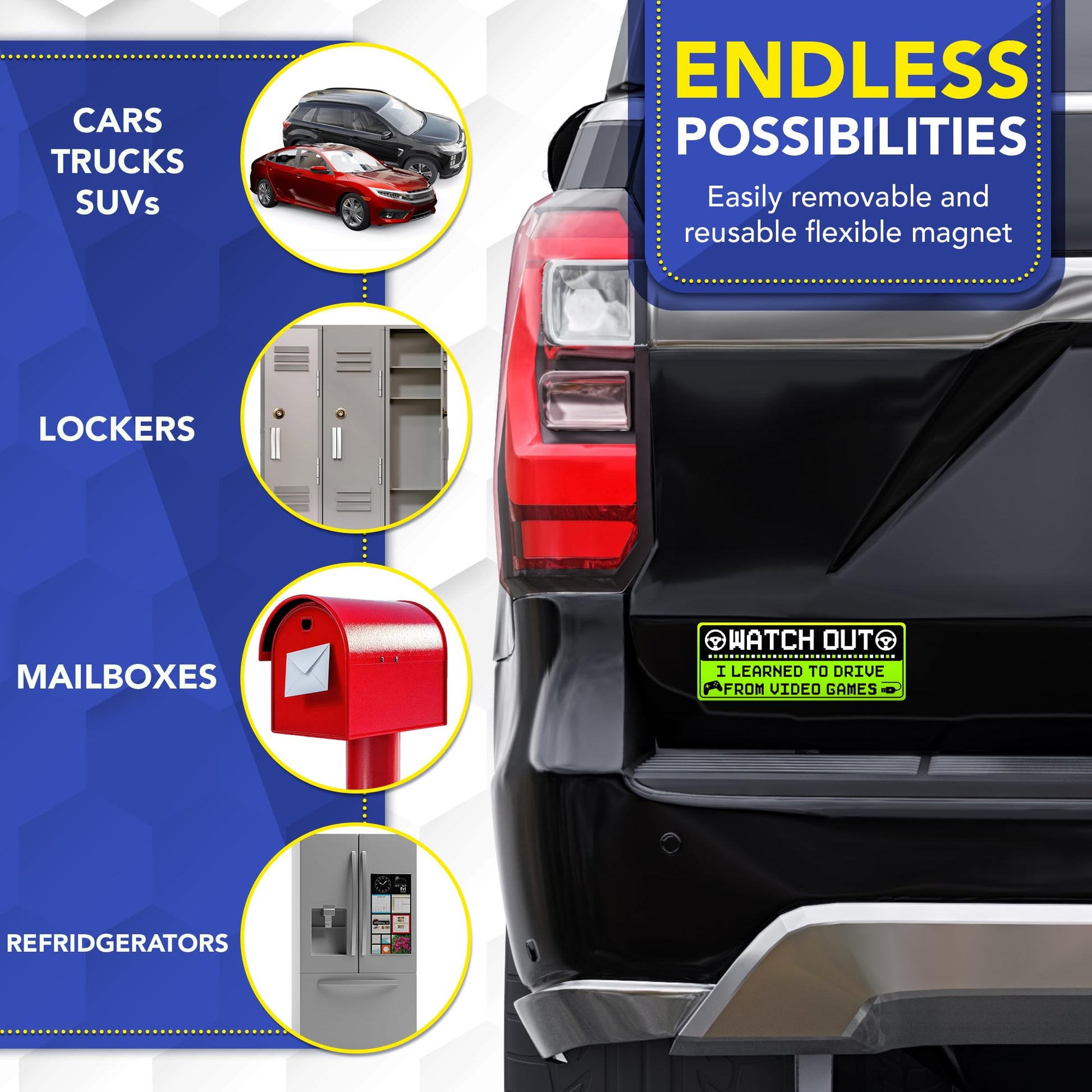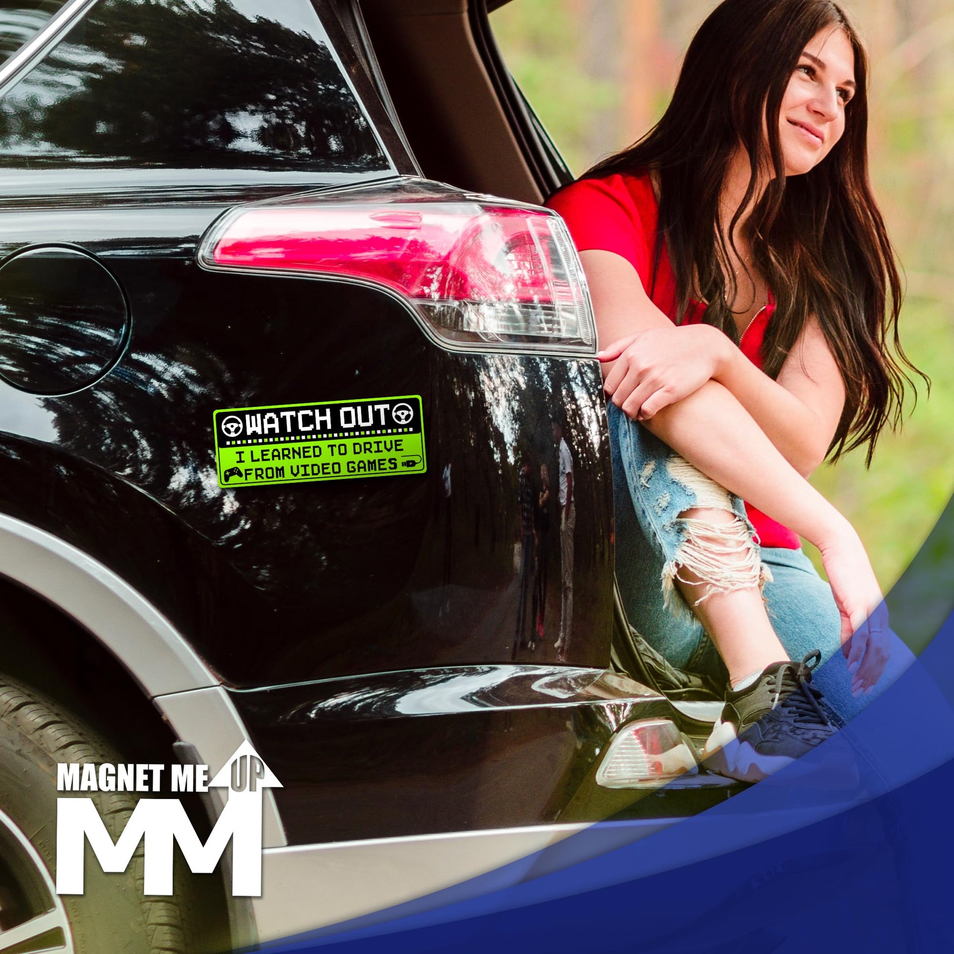 Magnet Me Up Funny Car Magnet - Watch Out I Learned to Drive from Video Games- 3x8 Inches, Bright Green Gamer Humor Magnetic Decal, for Cars, Trucks & SUVs, UV Printed Vinyl, Made in USA