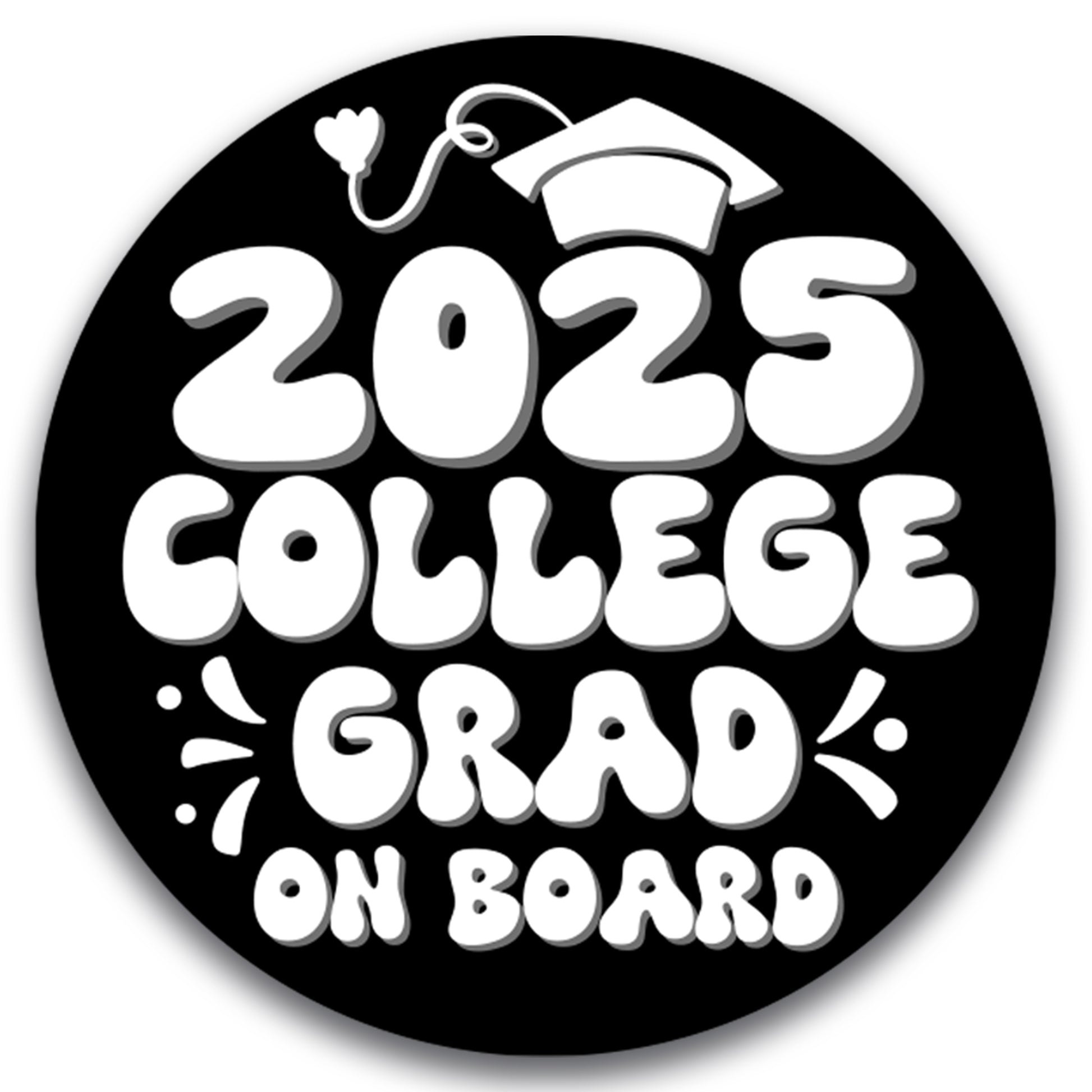 - 🧲Celebrate the Class of 2025 – Proudly show off your achievement with this eye-catching “2025 College Grad On Board” sticker! Perfect for cars, laptops, or dorm doors, it’s a fun and festive way to mark this milestone year.