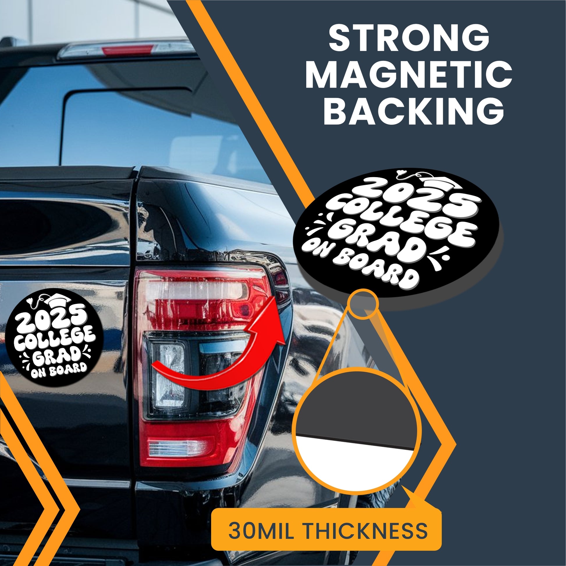 Magnet Me Up Graduation Magnet - 5" Round College Grad Gift, Car Magnet in Black and White - Full-Color UV Printed, Weatherproof, Made in The USA - Graduation Car Decor, Class of 2025
