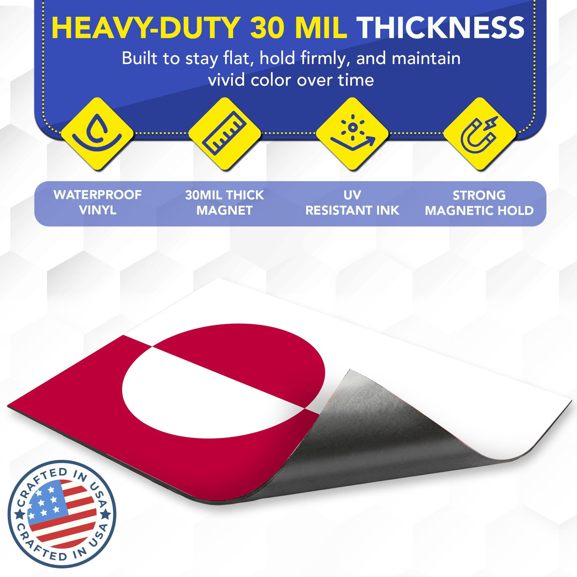 - ๐งฒ ๐ ๐ฎ๐ฑ๐ฒ ๐ณ๐ฟ๐ผ๐บ ๐๐๐ฟ๐ผ๐ป๐ด ๐ฎ๐ป๐ฑ ๐ฑ๐๐ฟ๐ฎ๐ฏ๐น๐ฒ ๐บ๐ฎ๐ด๐ป๐ฒ๐๐ถ๐ฐ ๐๐ถ๐ป๐๐น; this ensures that the magnet adheres securely to metal surfaces and will maintain its magnetic strength over time. Our magnets are waterproof and heat resistant, which makes them ideal for outdoor use. We make our magnets with UV-resistant inks so that they do not fade over time from sun exposure.