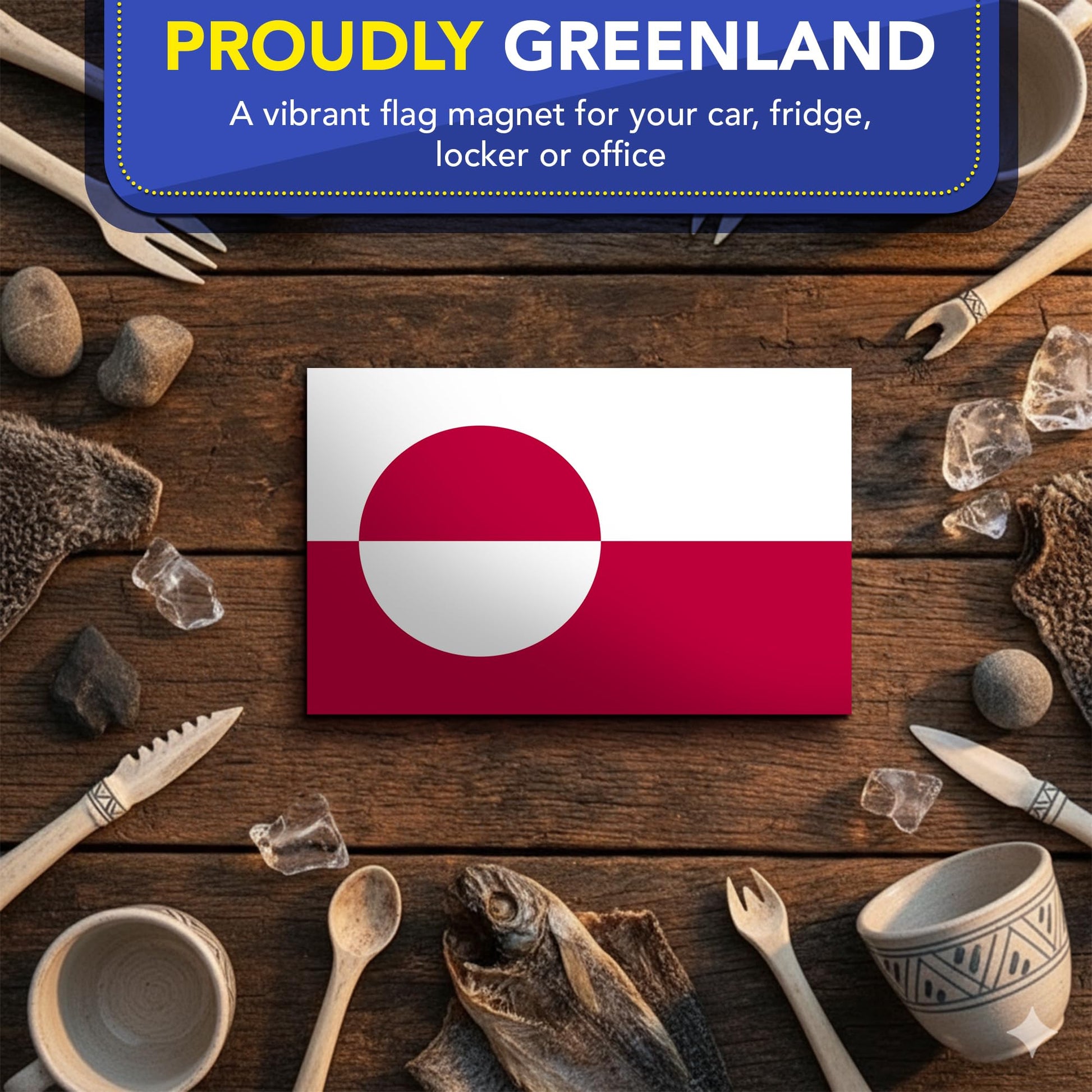- ๐ฆ๐ต๐ผ๐ ๐๐ผ๐๐ฟ ๐๐ฟ๐ฒ๐ฒ๐ป๐น๐ฎ๐ป๐ฑ๐ถ๐ฐ ๐ฝ๐ฟ๐ถ๐ฑ๐ฒ- Feature the iconic red and white "Erfalasorput" design on your vehicle. This high-quality magnet is a perfect way to display your heritage or love for Greenland on cars, trucks, SUVs, or any magnetic metal surface.