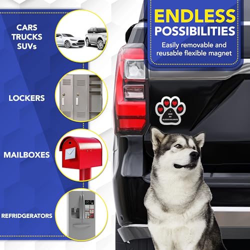 Magnet Me Up I Love My Alaskan Malamute Car Magnet, 5 Inch Pawprint, Black and White with Red Heart, UV Printed Dog Breed Magnetic Decal, Fridge, Lockers, Dog Lover Gift, Made in USA