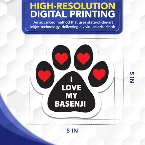 Magnet Me Up I Love My Basenji Pawprint Shaped Magnetic Decal for Cars, Trucks & SUV - 4x6 Inches, UV Printed Dog Lover Gift, Weatherproof - Made in The USA