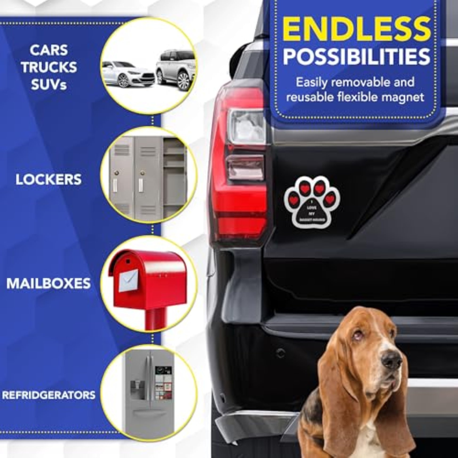 Magnet Me Up I Love My Basset Hound Pawprint Shaped Magnetic Decal - 5 Inch UV-Printed, Durable Vinyl Pet Lover Gift, Basset Hound Car Magnet for Cars, Trucks & SUV, Dog Lover Decor