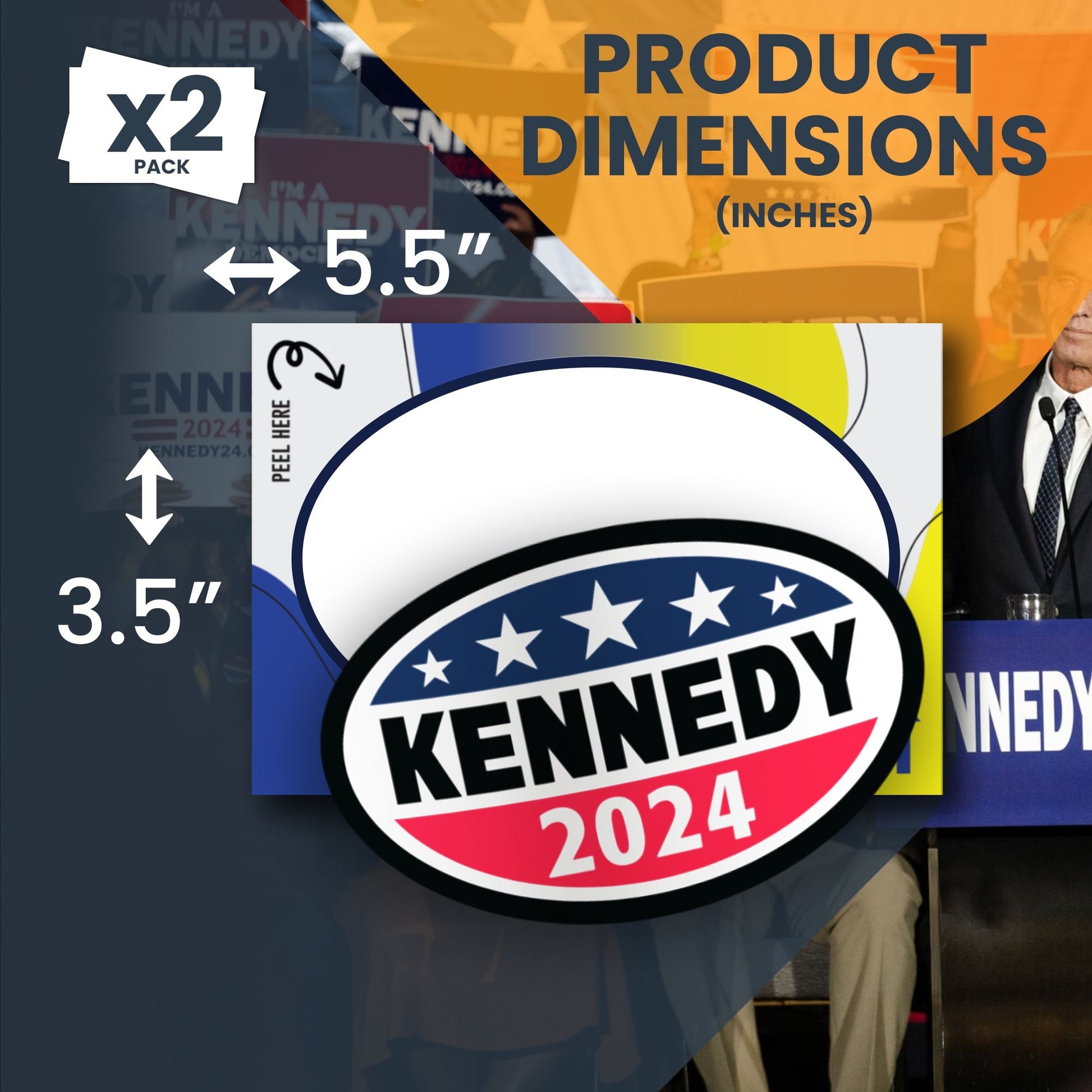 Magnet Me Up Kennedy 2024 Robert F. Kennedy, Jr. Democratic Political Party 2024 Adhesive Decal Sticker, 2 Pack, 5.5x3.5 Inch, Heavy Duty adhesion to Car Window, Bumper, etc