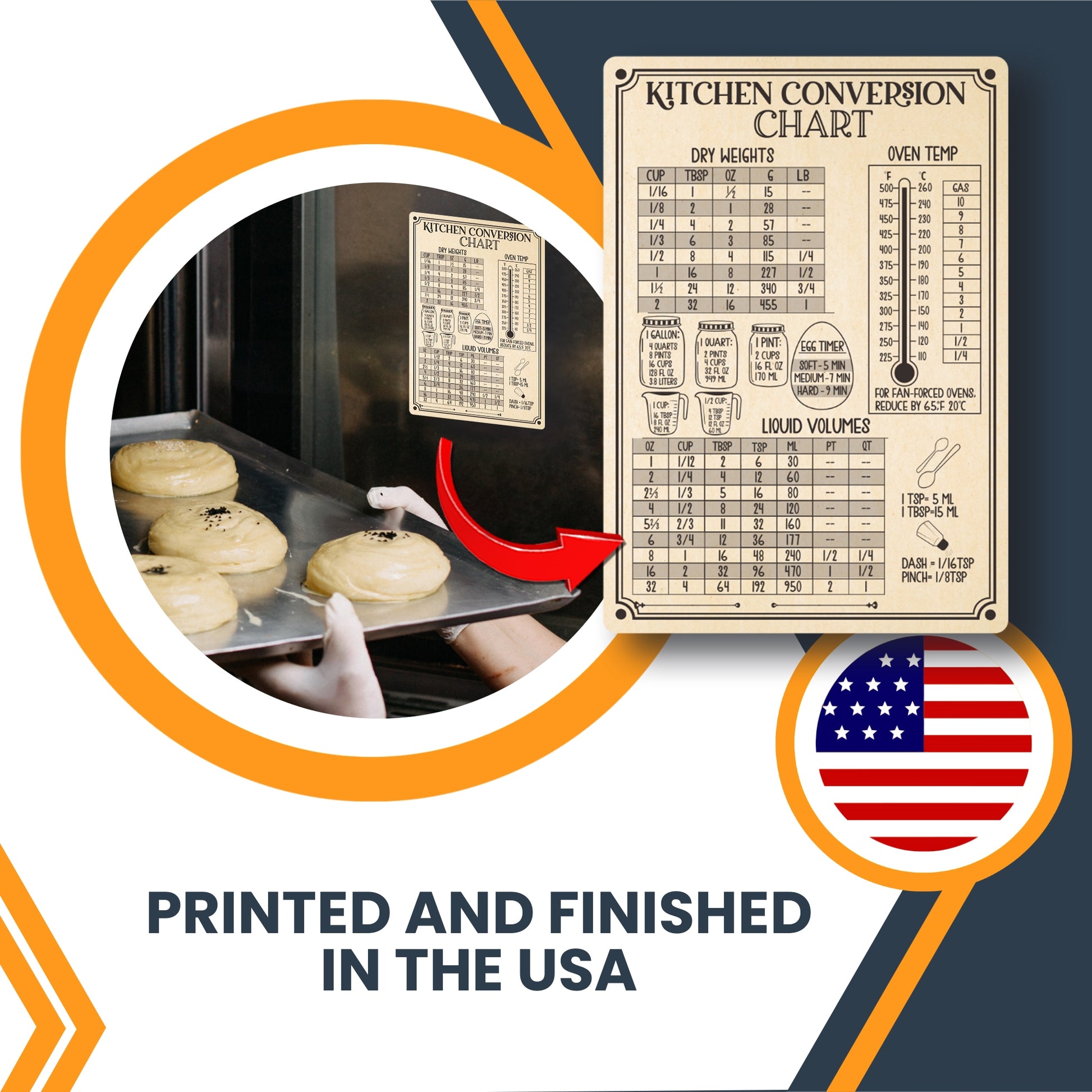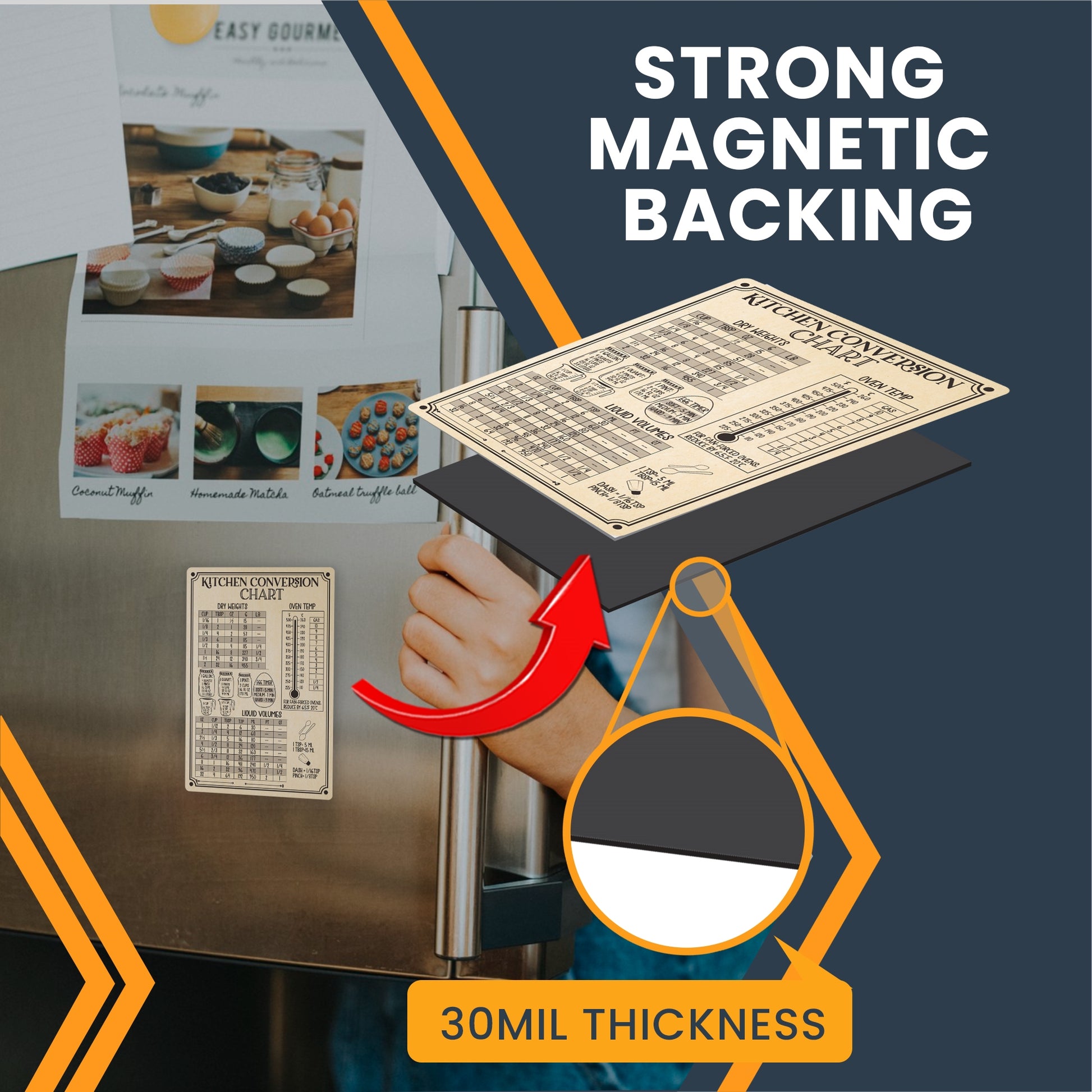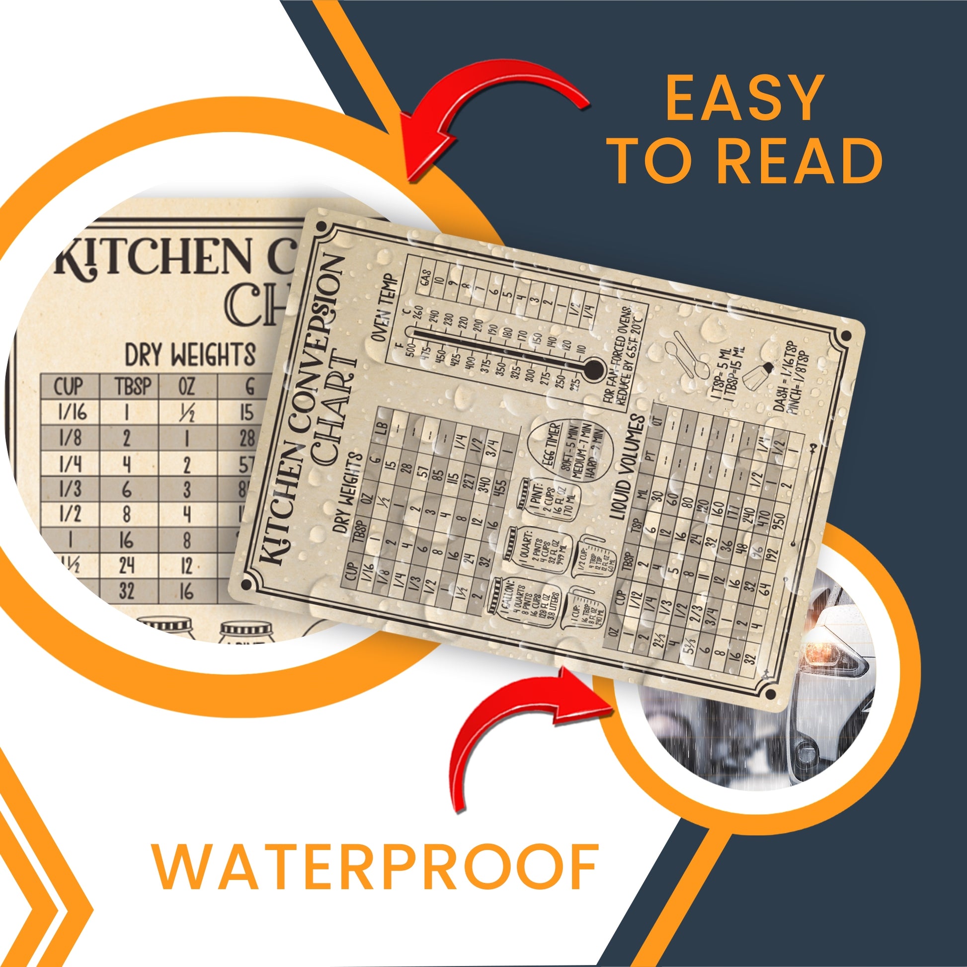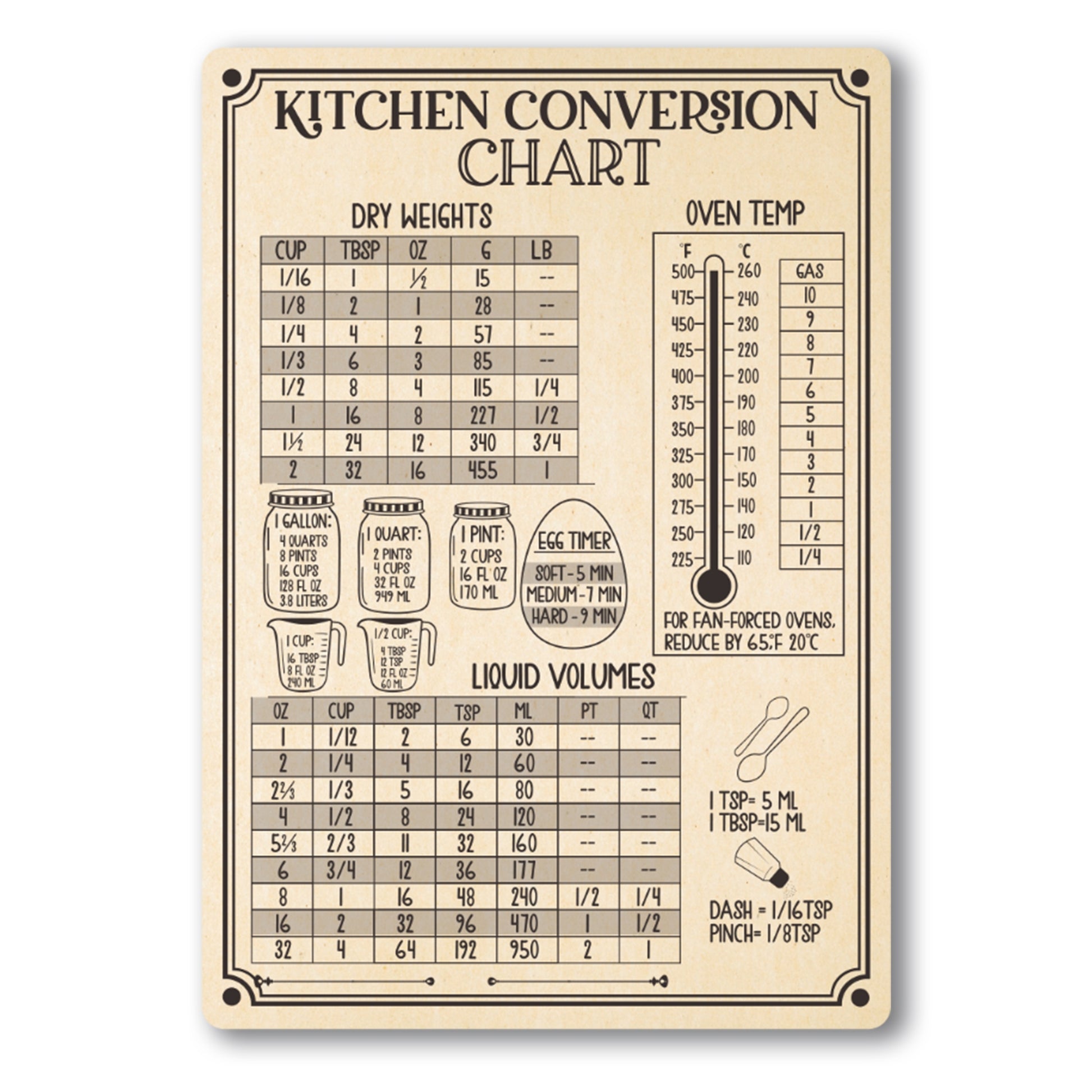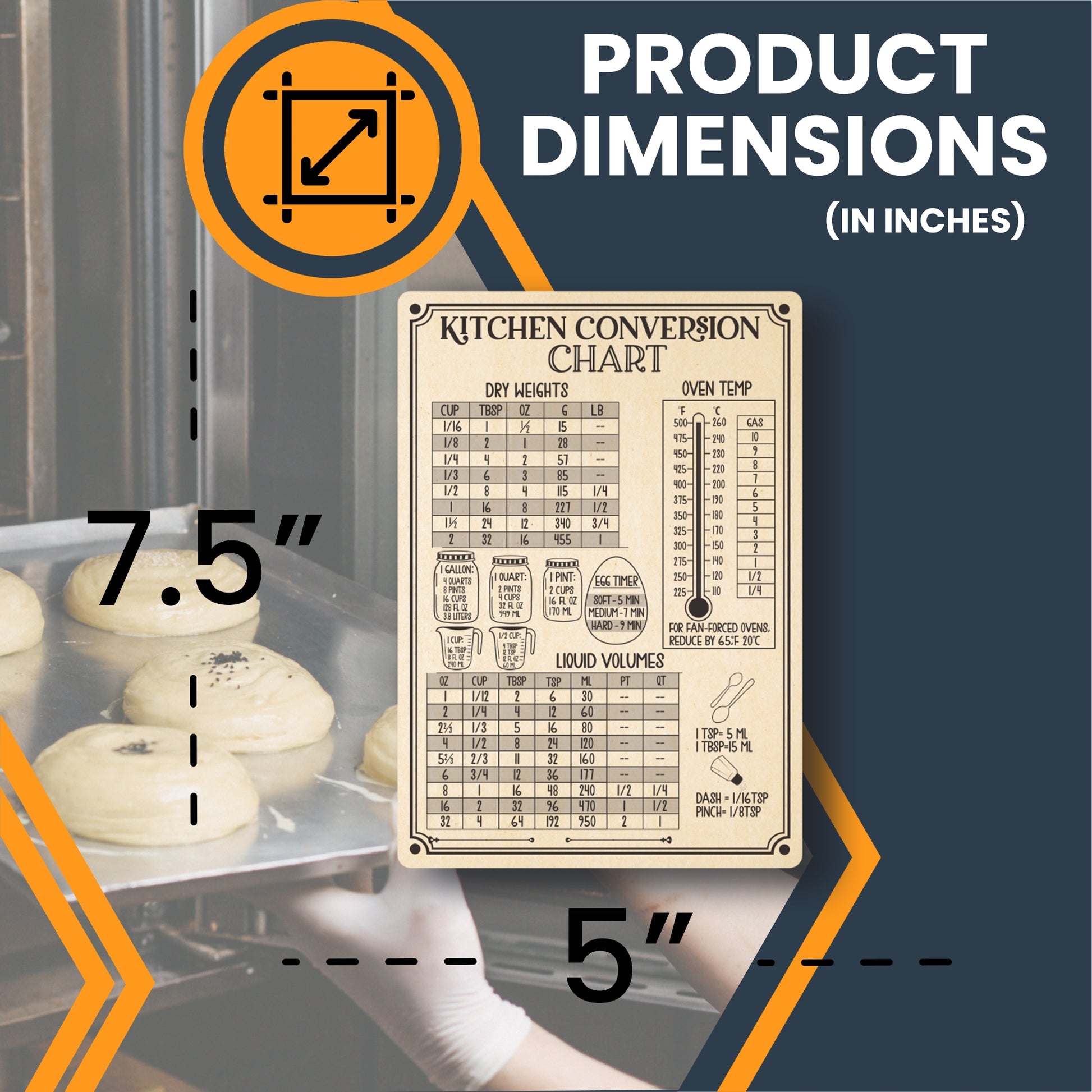 Magnet Me Up Large Rustic Kitchen Conversion Chart, 5x7.5 Magnet Decal, Cute Baking Gift and Measurement Recipe Accessory, Perfect for Refrigerator, Dishwasher or Any Other Magnetic Surface