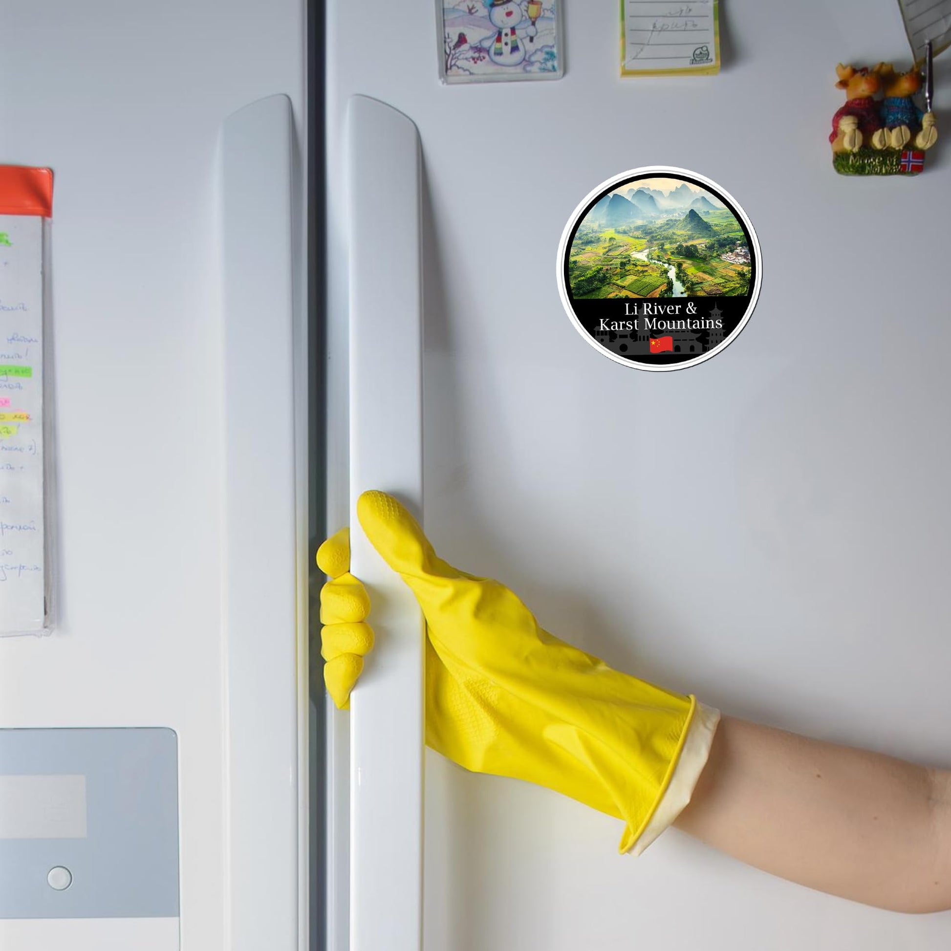 Magnet Me Up Li River & Karst Mountains Magnet Decal - 5" Round, Full-Color Chinese Souvenir, Automotive Magnet for Car, Truck, Or Any Magnetic Surface, Made in The USA