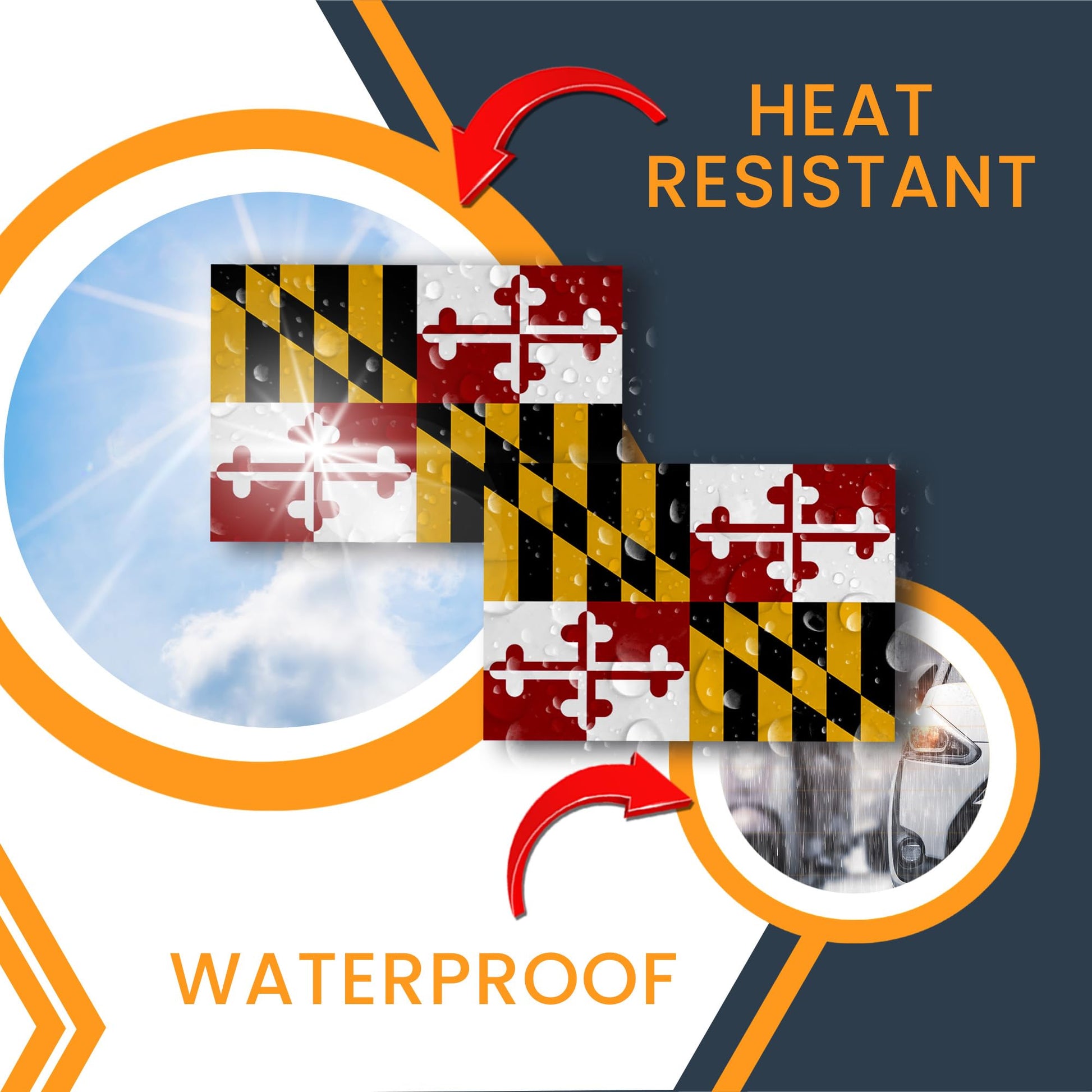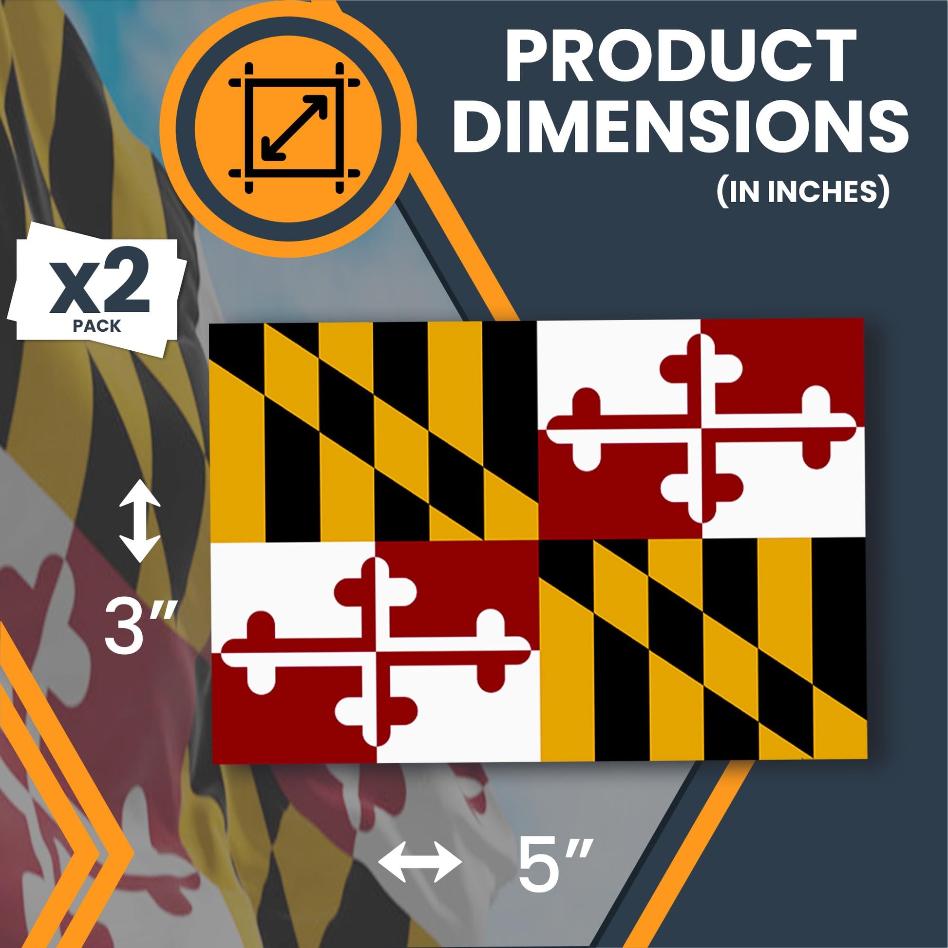Magnet Me Up Maryland US State Flag Bumper Sticker Decal, 3x5 2 Pack, Vinyl Adhesive Sticker for Car, Truck, SUV ? Weatherproof State Pride Collectible ? Full Color, Durable, Made in USA