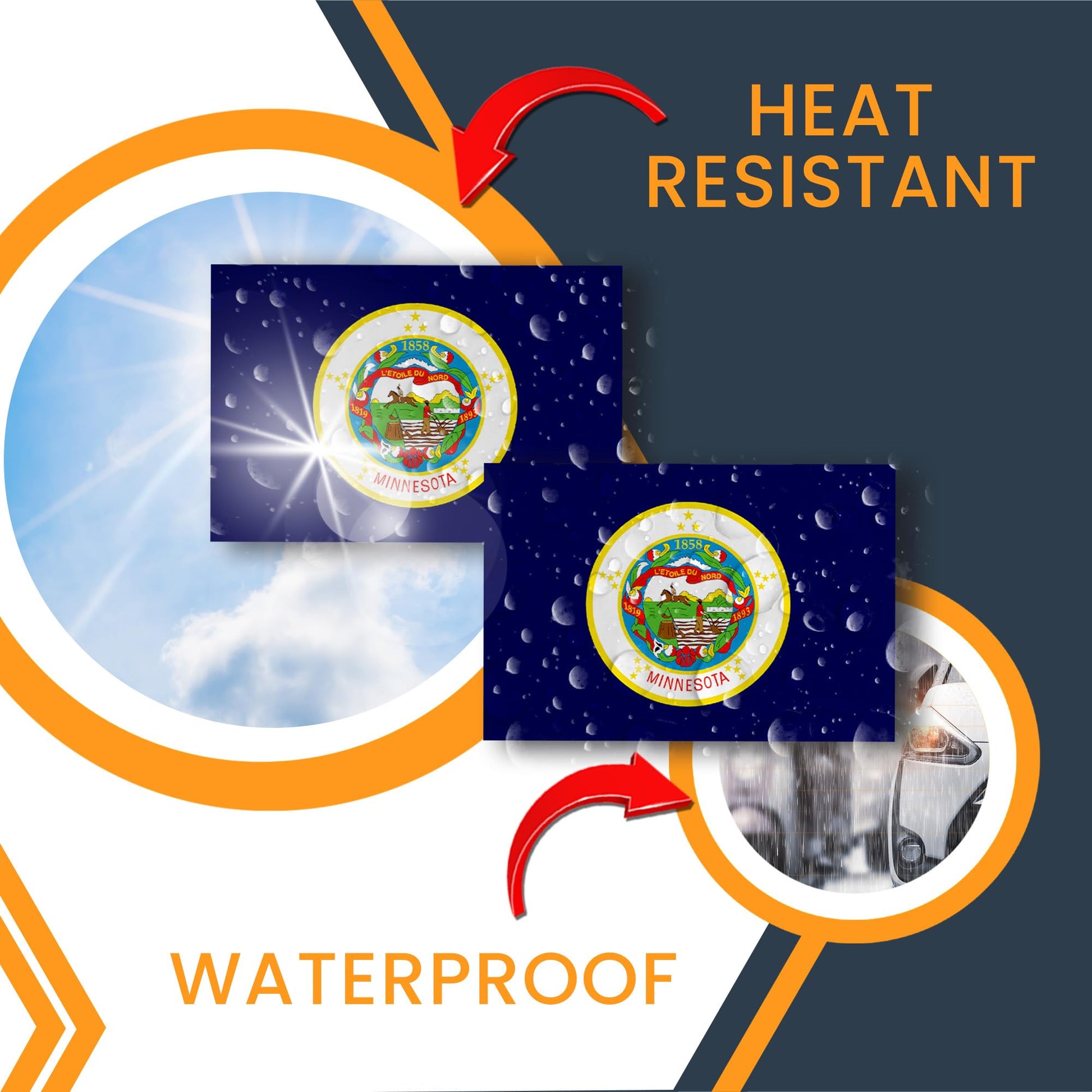 Magnet Me Up Minnesota US State Flag Bumper Sticker Decal, 3x5 2 Pack, Vinyl Adhesive Sticker for Car, Truck, SUV ? Weatherproof State Pride Collectible ? Full Color, Durable, Made in USA