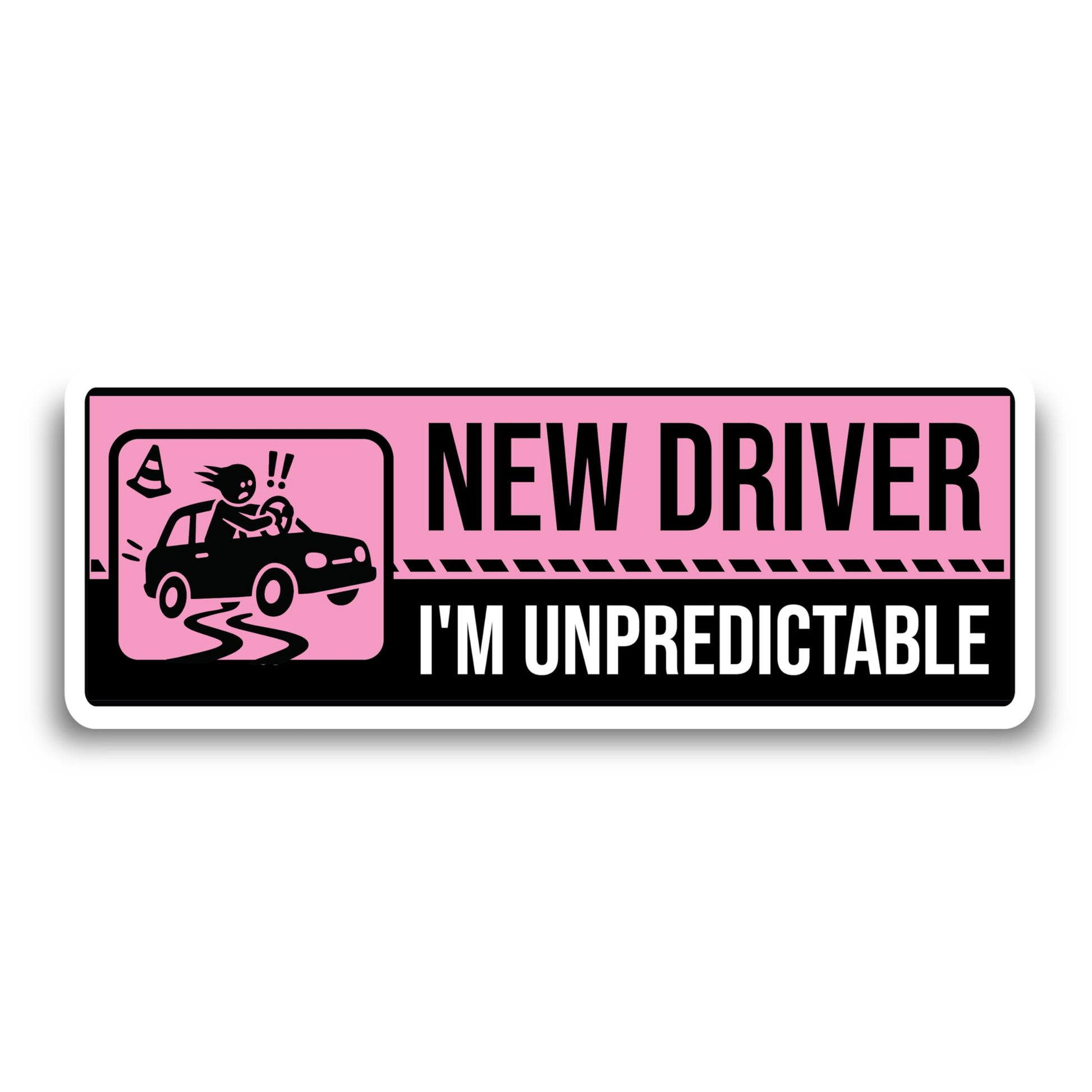 Magnet Me Up New Driver "I'm Unpredictable" Magnet Decal - 3x8" Caution Sign, Learner Driver Car Magnet Sign, UV Printed Full Color, Durable Waterproof Vinyl, Made in USA