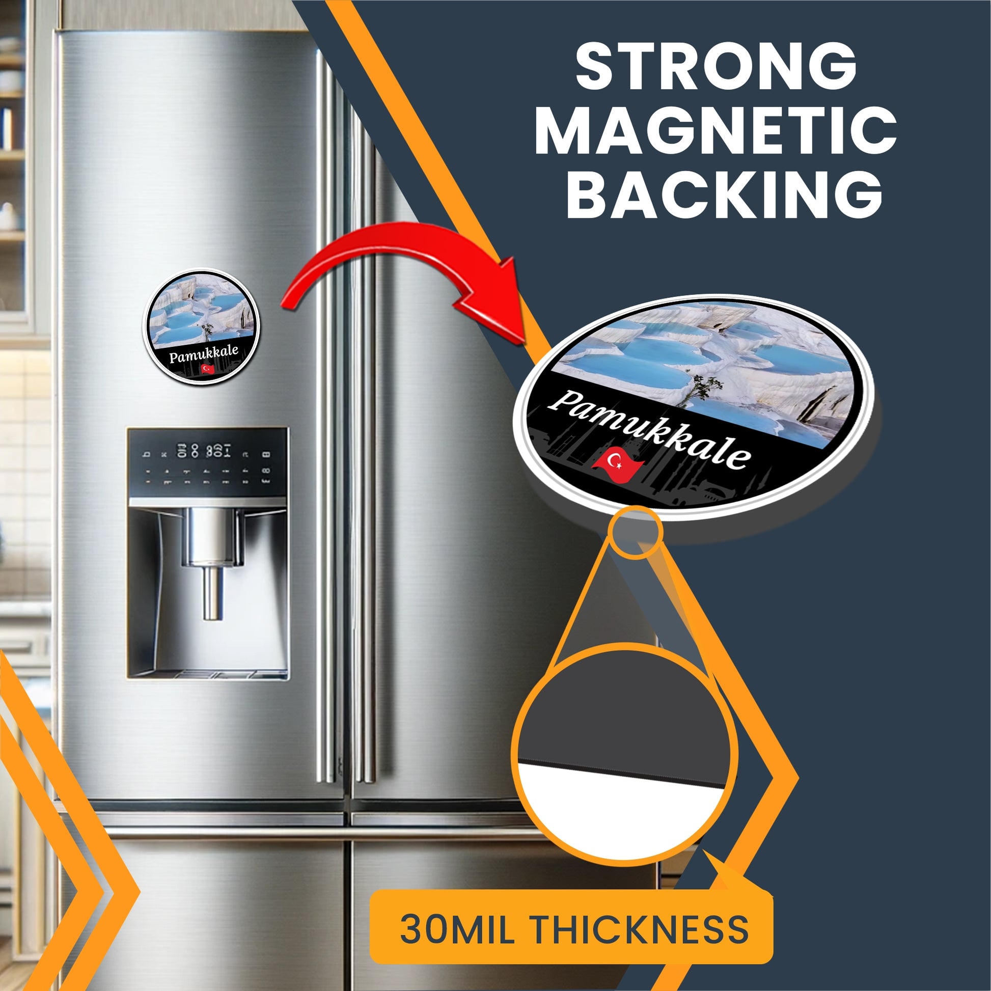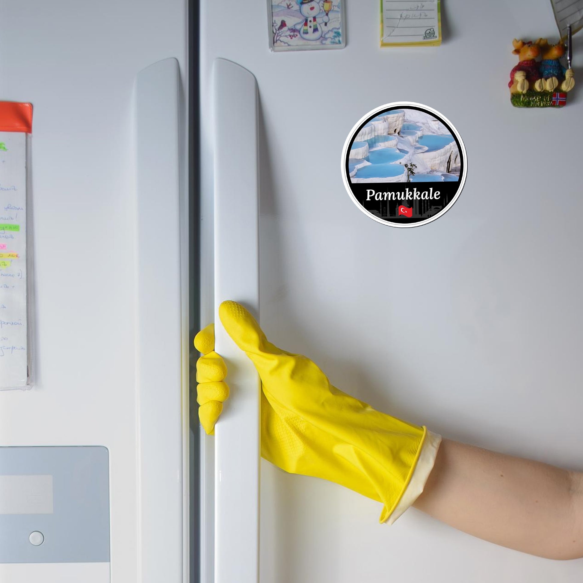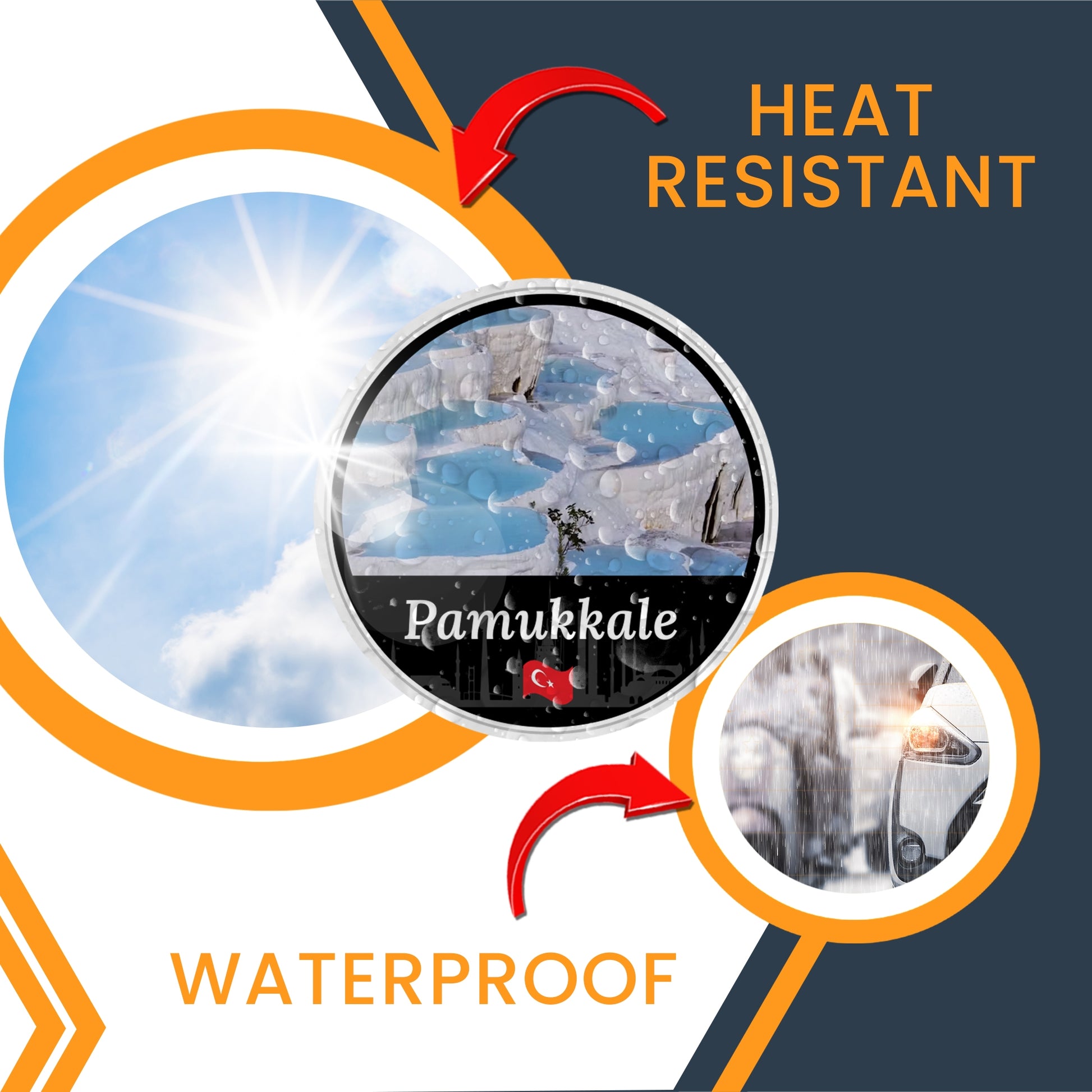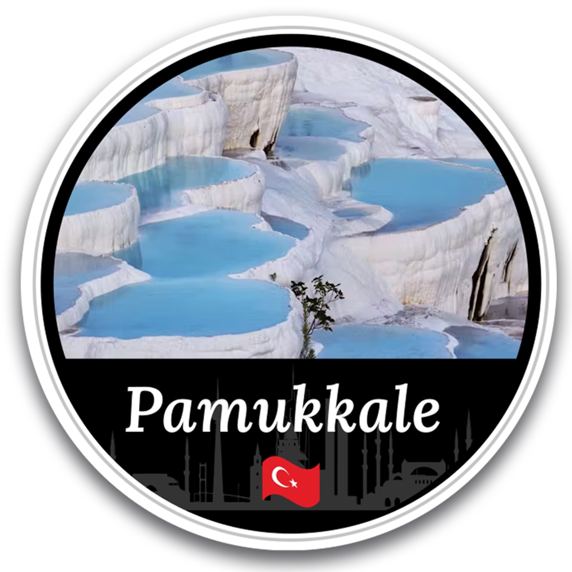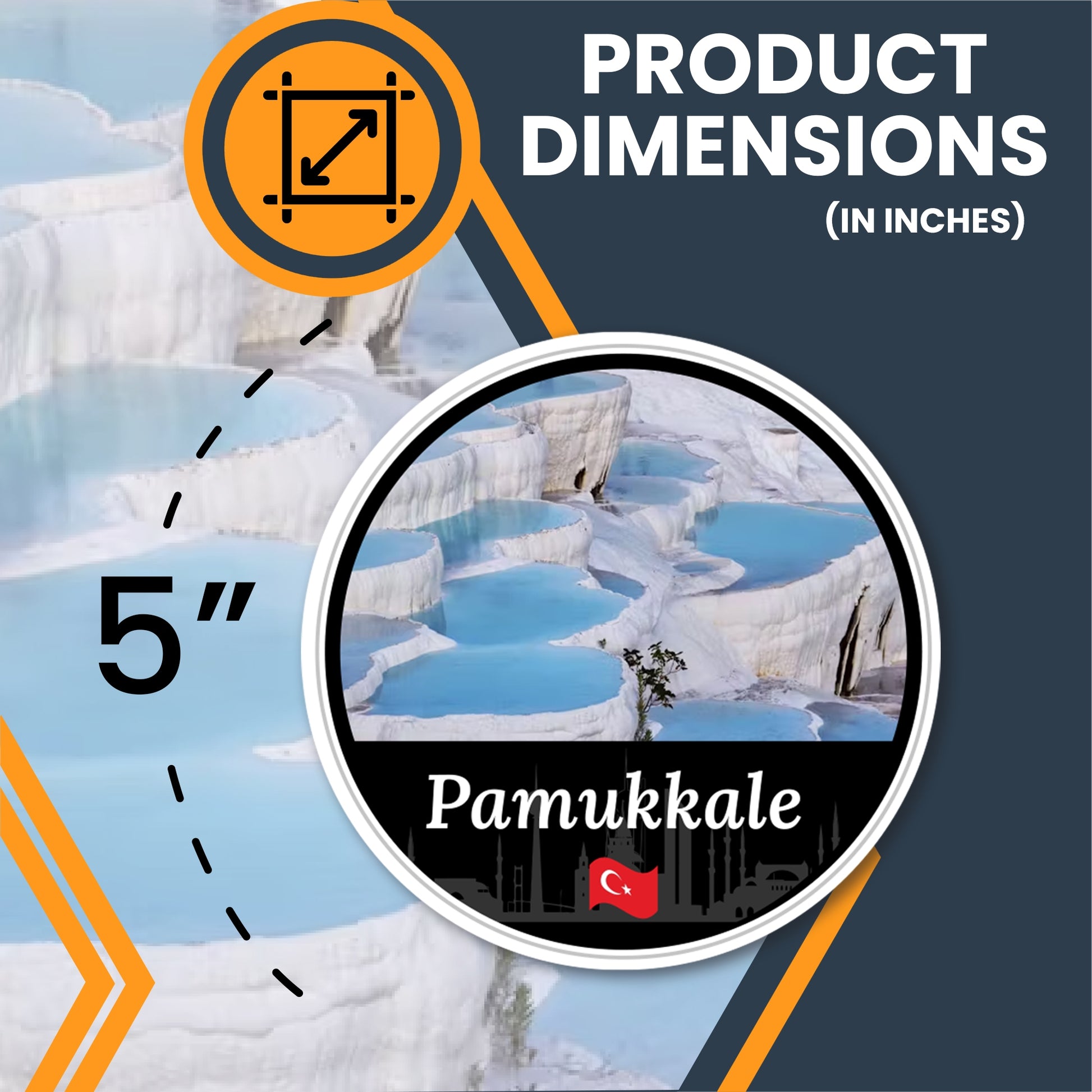 Magnet Me Up Pamukkale Magnet Decal, 5" Round Full-Color Automotive Magnet Featuring Turkish Travertine Thermal Pools, Durable Weatherproof Magnetic Vinyl, Travel Gift Ideas, Made in The USA