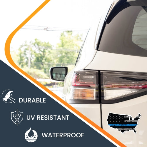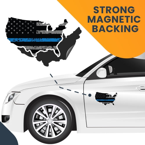 Magnet Me Up Patriotic Distressed Thin Blue Line American Flag in The Shape of The United States Magnet Decal, 4x6 Inches, Heavy Duty Automotive Magnet for Car Truck SUV