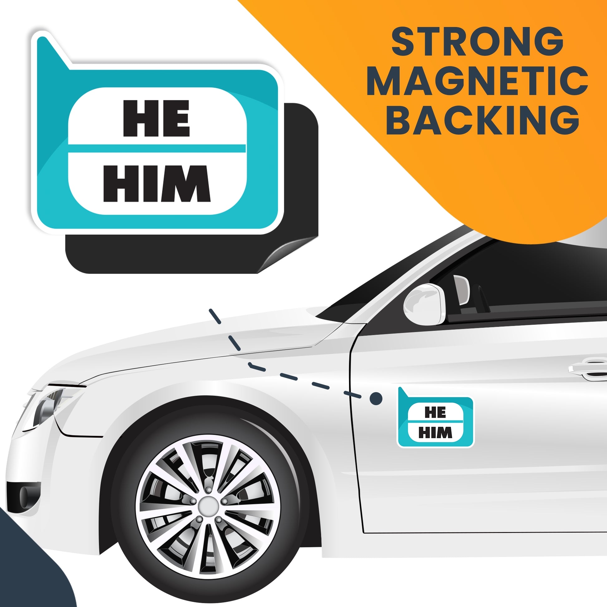 Magnet Me Up Pronoun He Him Magnet Decal, 4x5 inch, Heavy Duty Automotive Magnet for Car, Truck, SUV Or Any Magnetic Surface, in Support of Transgender and Self Expression