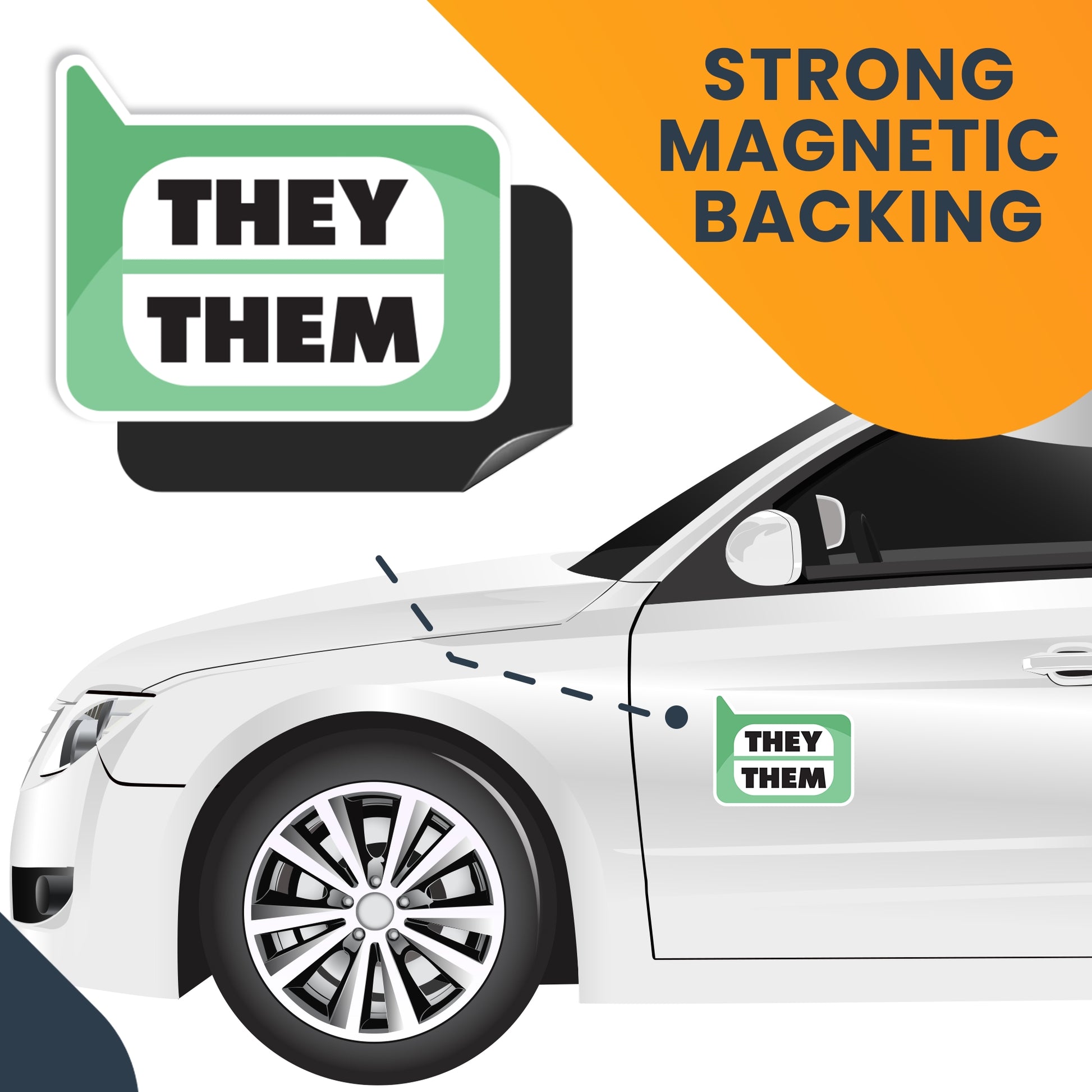 Magnet Me Up Pronoun They Them Magnet Decal, 4x5 inch, Heavy Duty Automotive Magnet for Car, Truck, SUV Or Any Magnetic Surface, in Support of Transgender and Self Expression
