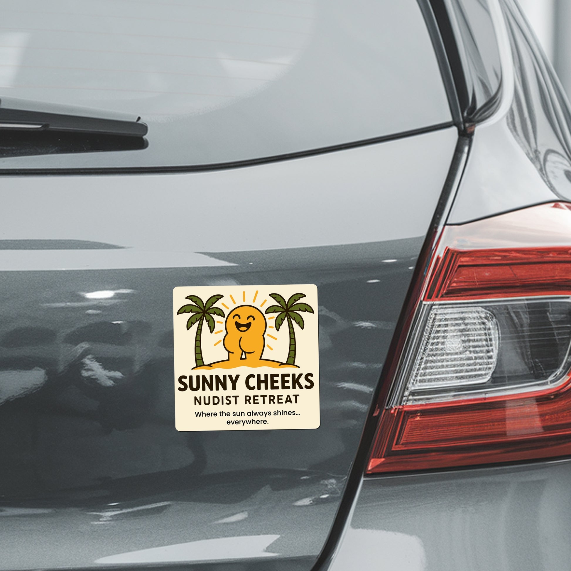 Magnet Me Up Sunny Cheeks Nudist Retreat Magnet - Funny Gag Car Magnet for Pranks & Joke Gifts - Hilarious 5-Inch Weatherproof UV Vinyl Magnetic Decal for Vehicles, Lockers, Fridges - Made in USA