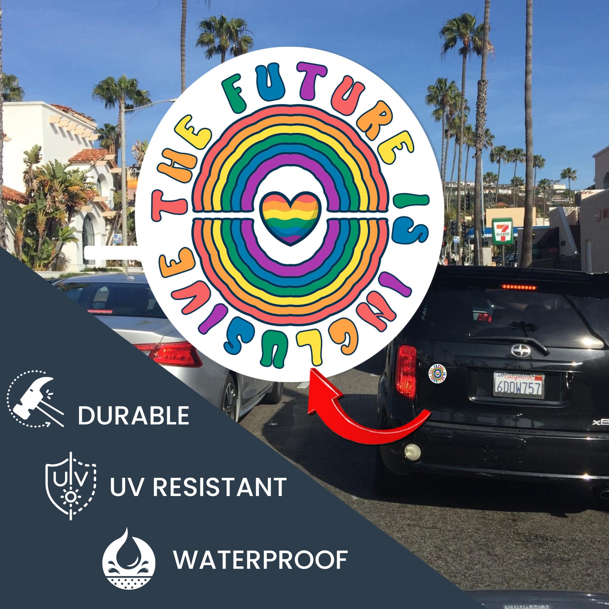 Magnet Me Up The Future is Inclusive LGBTQ Magnet Decal, 6x4 Inch, Rainbow Support Gay Pride and Equality, Love Conquers All, Automotive Magnet for Car, Truck, Or Any Magnetic Surface, Made in USA