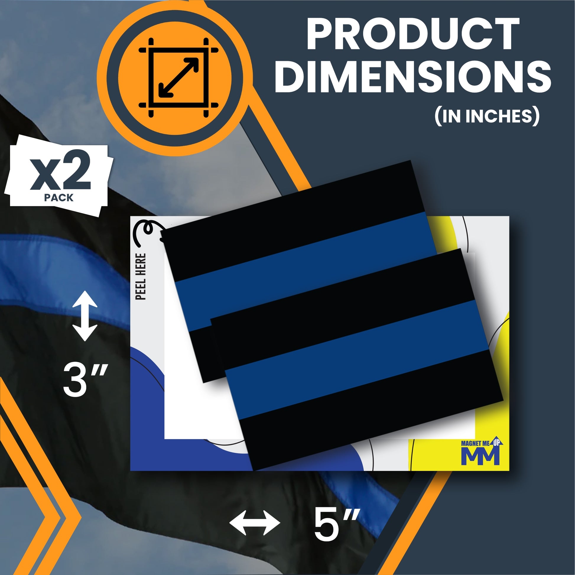 Magnet Me Up Thin Blue Line Adhesive Decal Sticker, 2 Pack, 3x5 Inch, Heavy Duty Adhesion to Car Window, Bumper, Etc Showing Patriotic Support of Police and Law Enforcement
