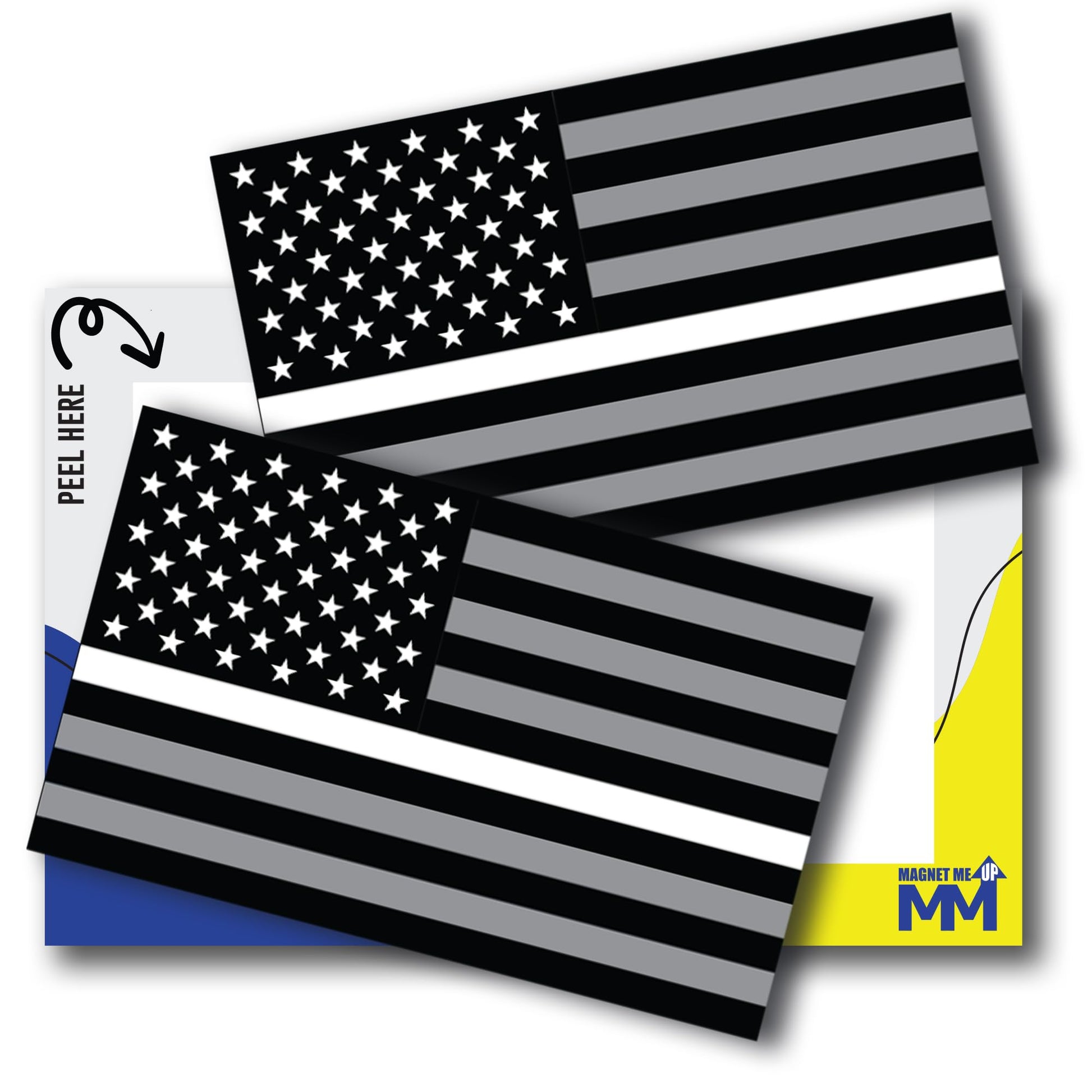 Magnet Me Up Thin White Line American Flag Adhesive Decal Sticker, 3x5 Inches, Black, White, and Grey, Heavy Duty Automotive Sticker for Car, Truck, SUV ? Support for Emergency Medical Services (EMS)