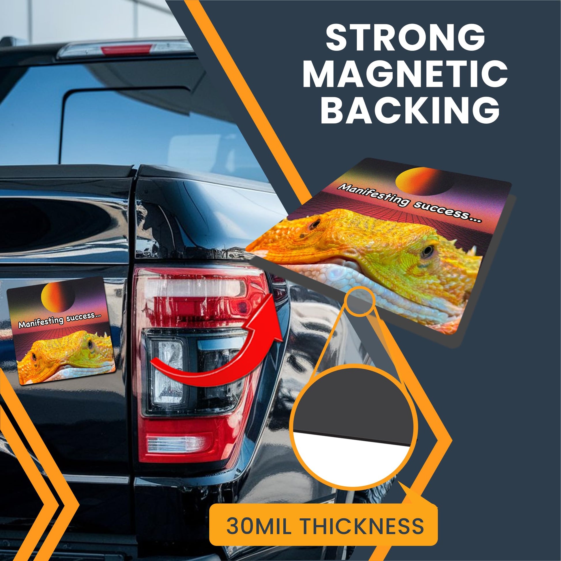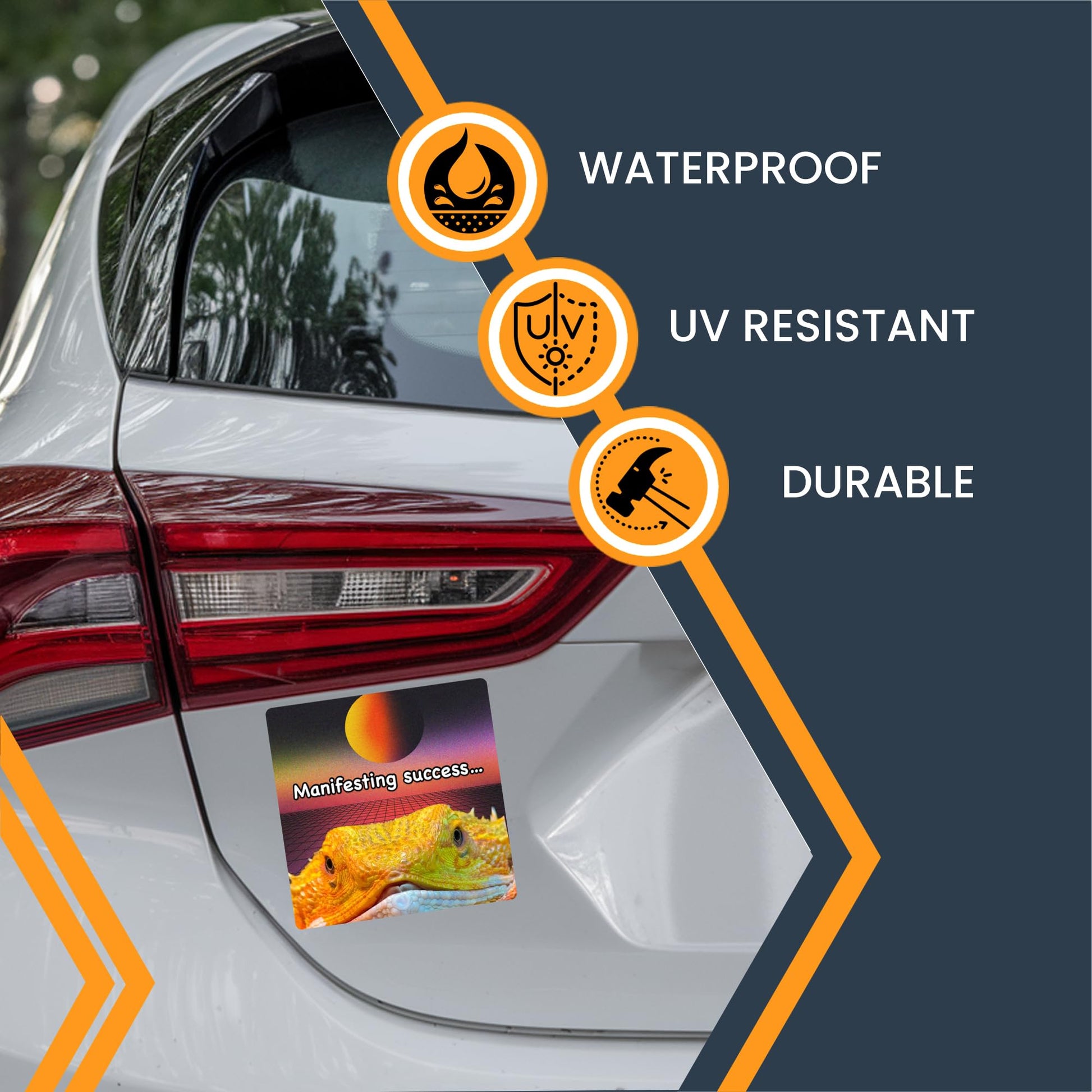Magnet Me Up WHOSAGOODLIZARD 5" Square Funny Lizard Car Magnet - Manifesting Success Retro Vaporwave Aesthetic - Car Fridge Locker Magnetic Decal - UV Printed Vinyl, Souvenir Gifts, Made in USA