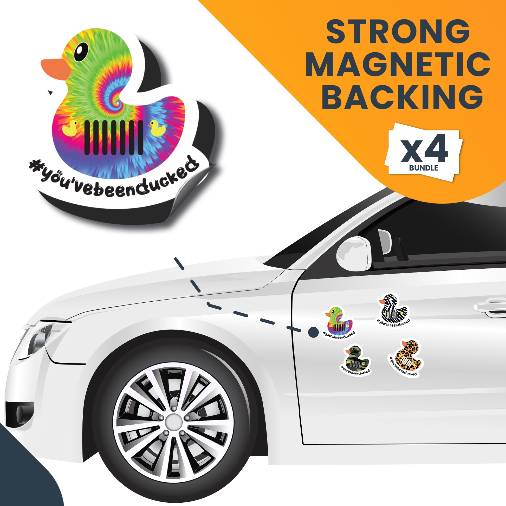 Magnet Me Up You've Been Ducked Cute Vehicle Duck Magnets, Ducking Game, 4 Pk, 4x4 in, Army Tie Dye Leopard Zebra, Bumper Magnet