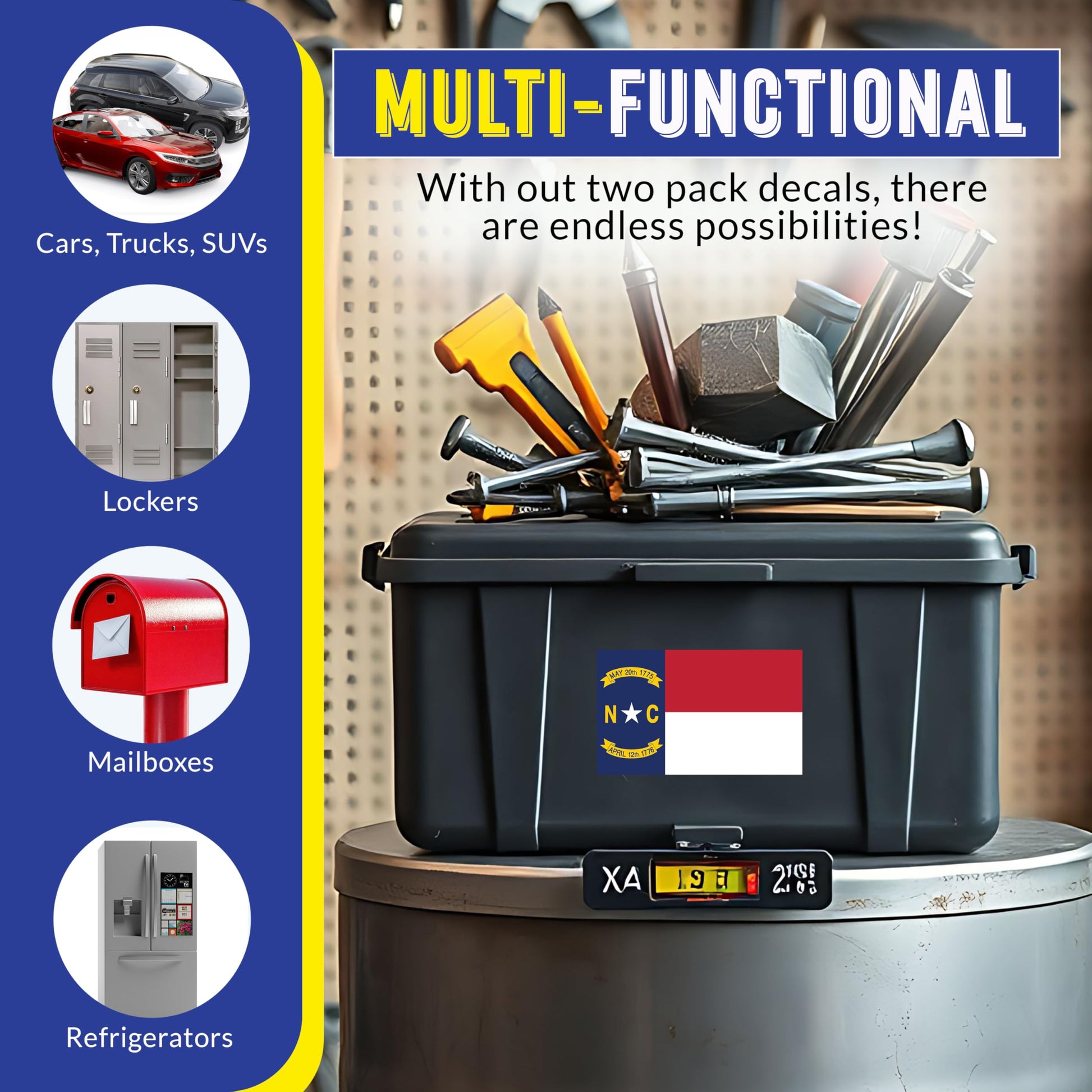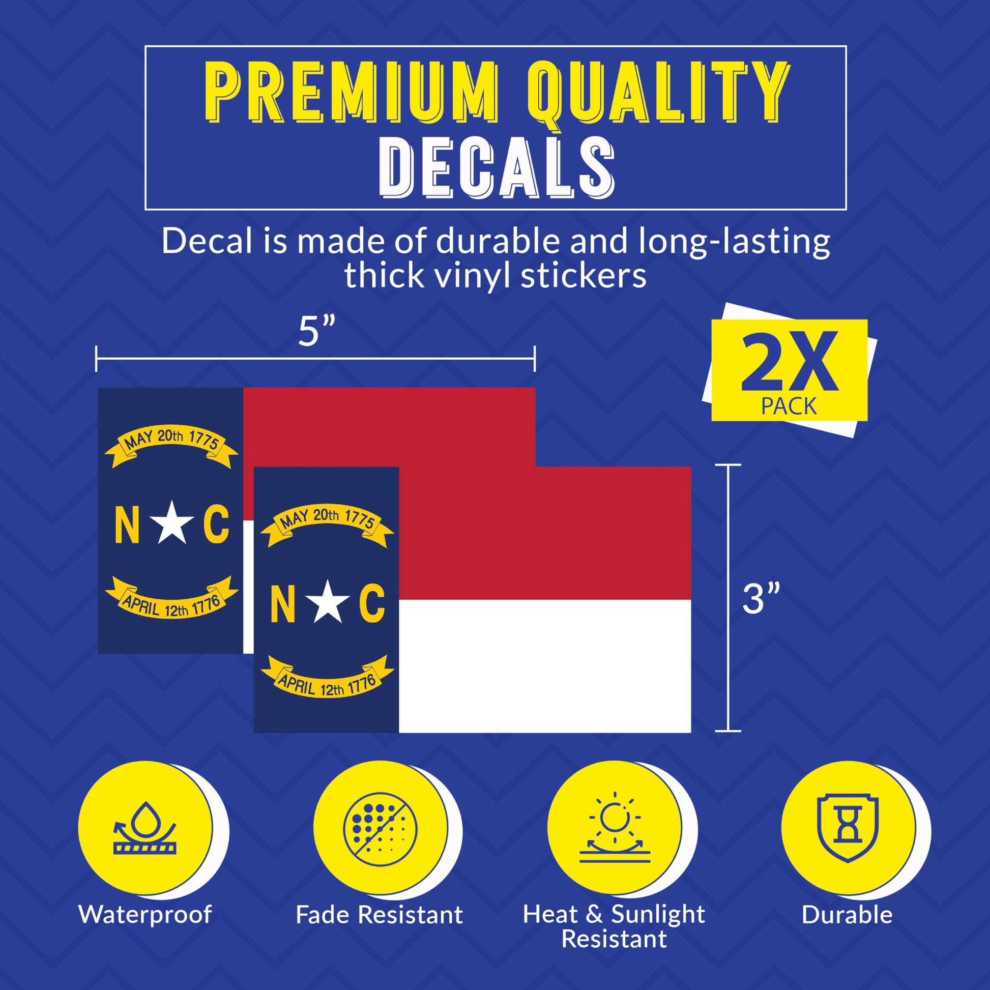 North Carolina Sticker Decal, US State Vinyl Bumper Sticker for Car, Laptop, Water Bottle, 2 Pack, Durable Weatherproof Adhesive, Full Color UV Print, Made in USA, Outdoor Safe Decal