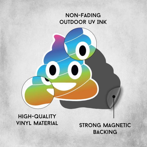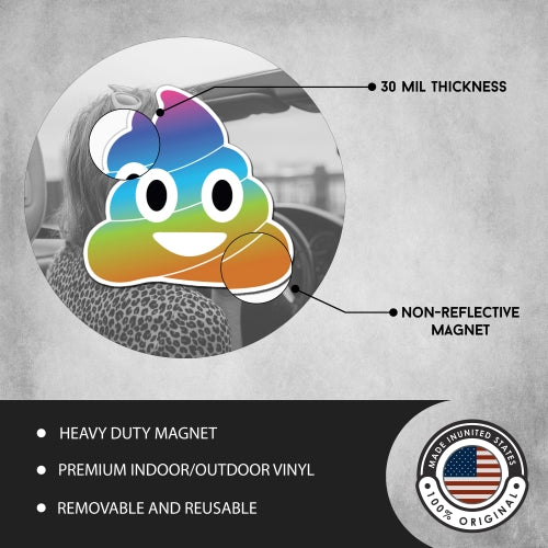 Magnet Me Up Rainbow Poop Emoticon Magnet Decal, Cute Self-Expression Decorative Magnet For Car, Truck, SUV, Or Any Other Magnetic Surface