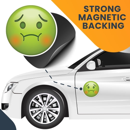 Magnet Me Up Sick Green Emoticon Magnet Decal, 5 Inch Round, Self-Expression Decorative Magnet for Car, Truck, SUV, Or Any Other Magnetic Surface